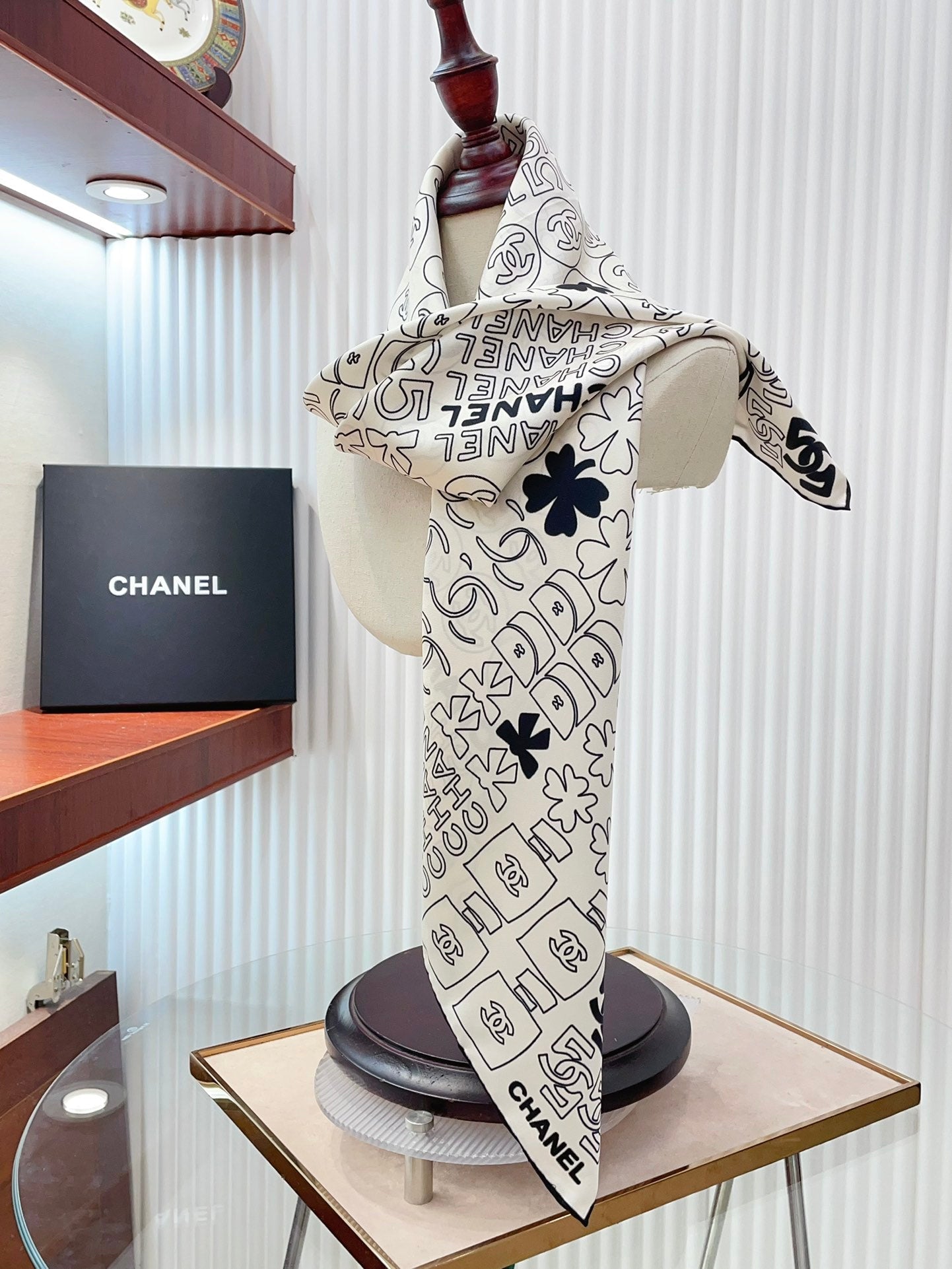 CC Scarf 200 CM In White Mix Black Small Flower Cashmere Silk 351691