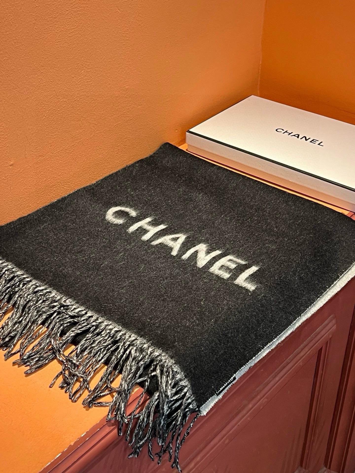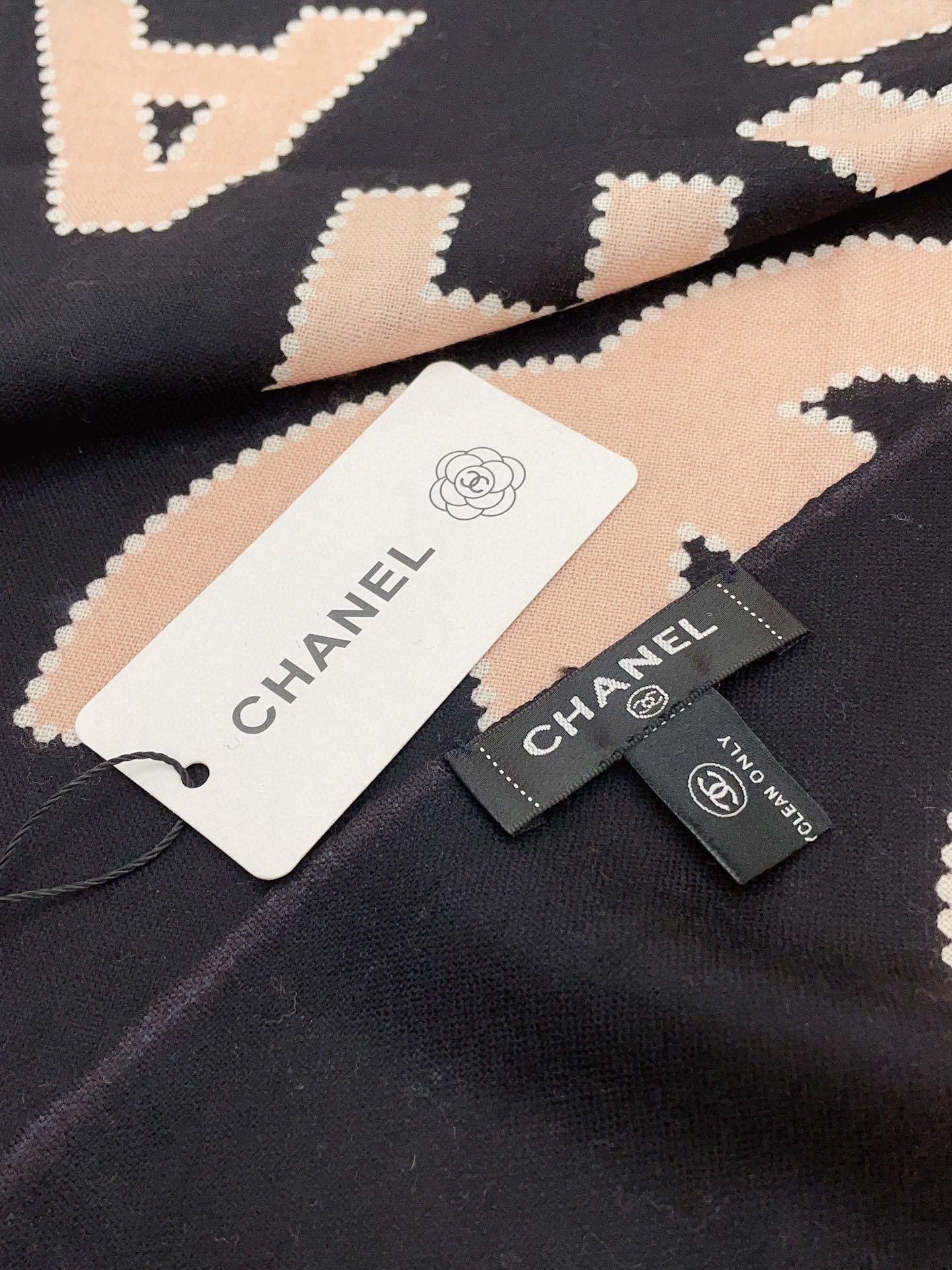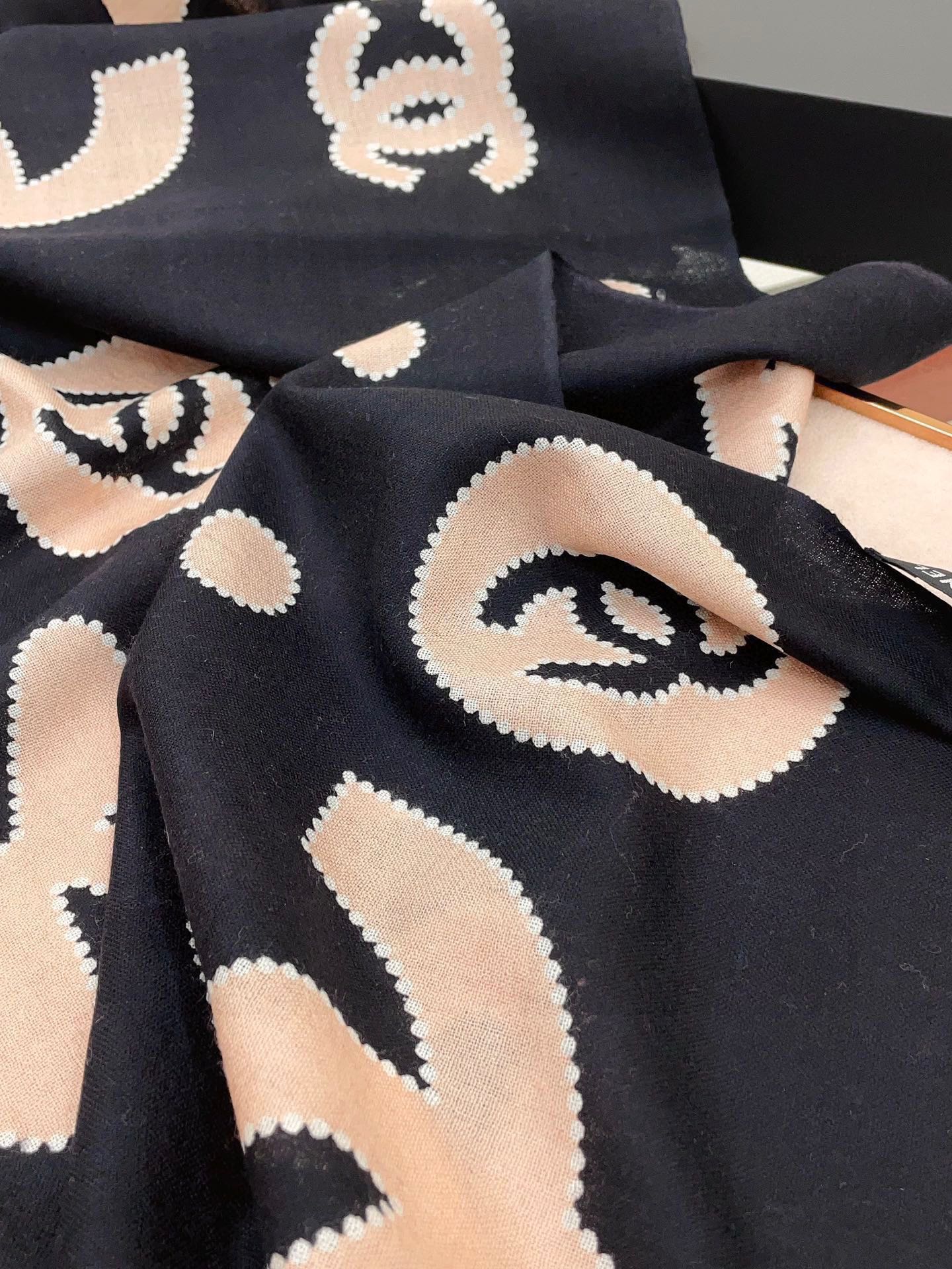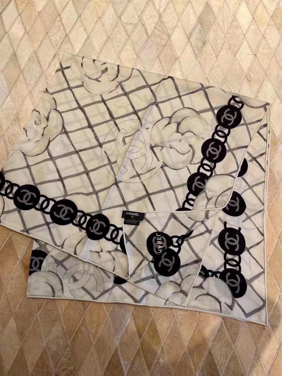 CC Square Scarf 140 CM In Black With White Logo Cashmere 300443