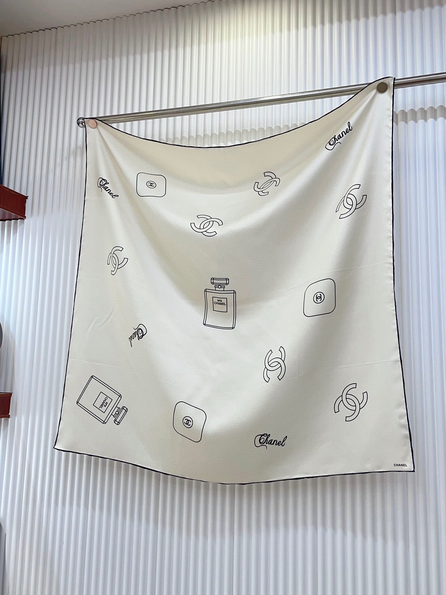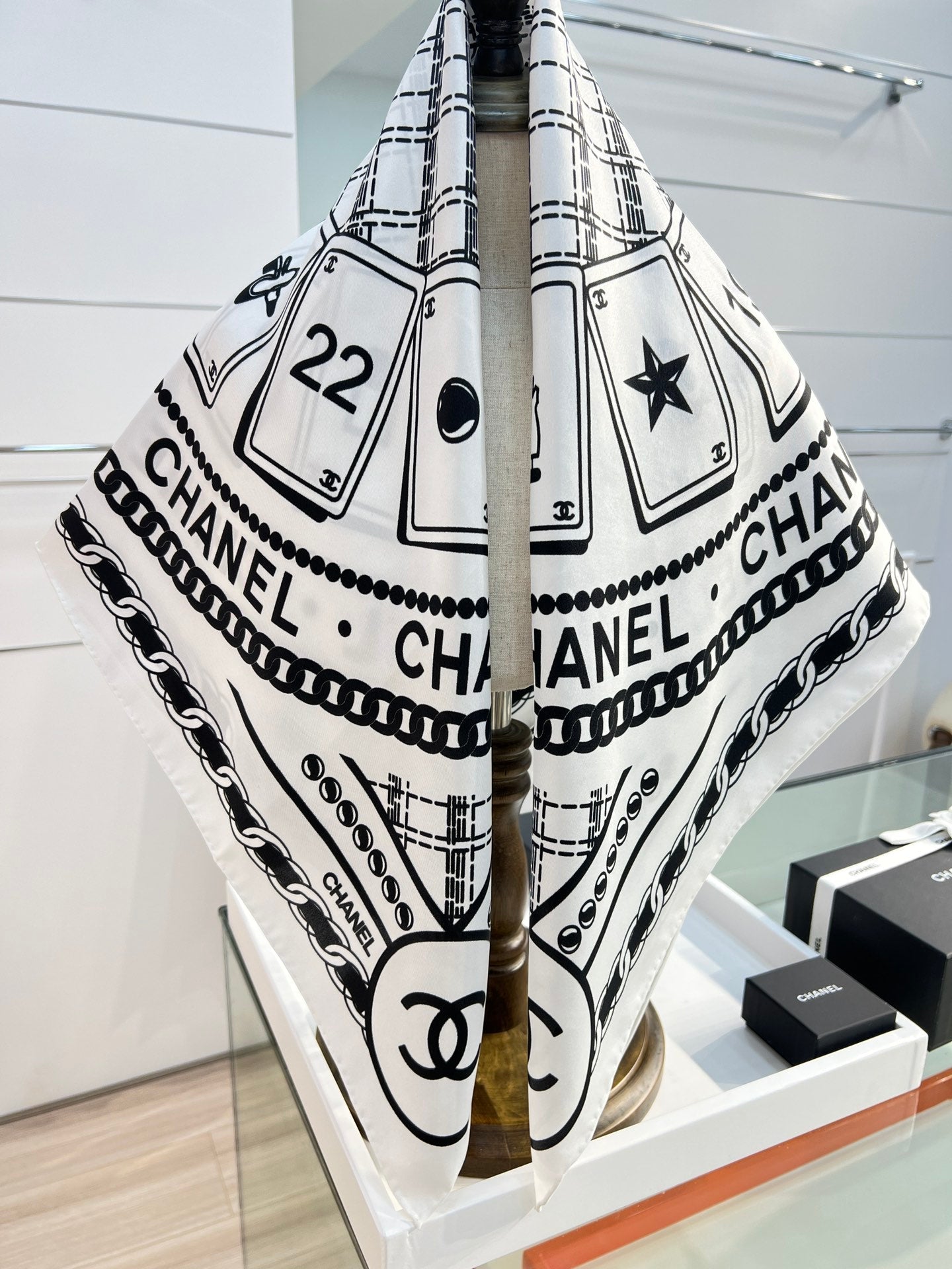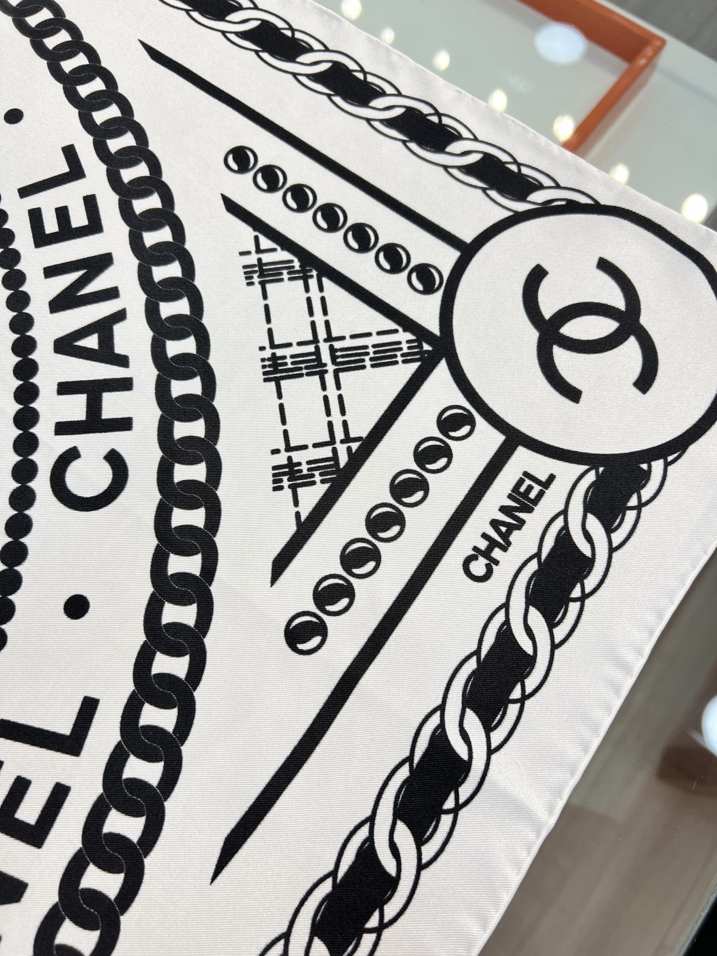 CC Square Scarf 90 CM In White Beige Mix Black Silk Twill 350414
