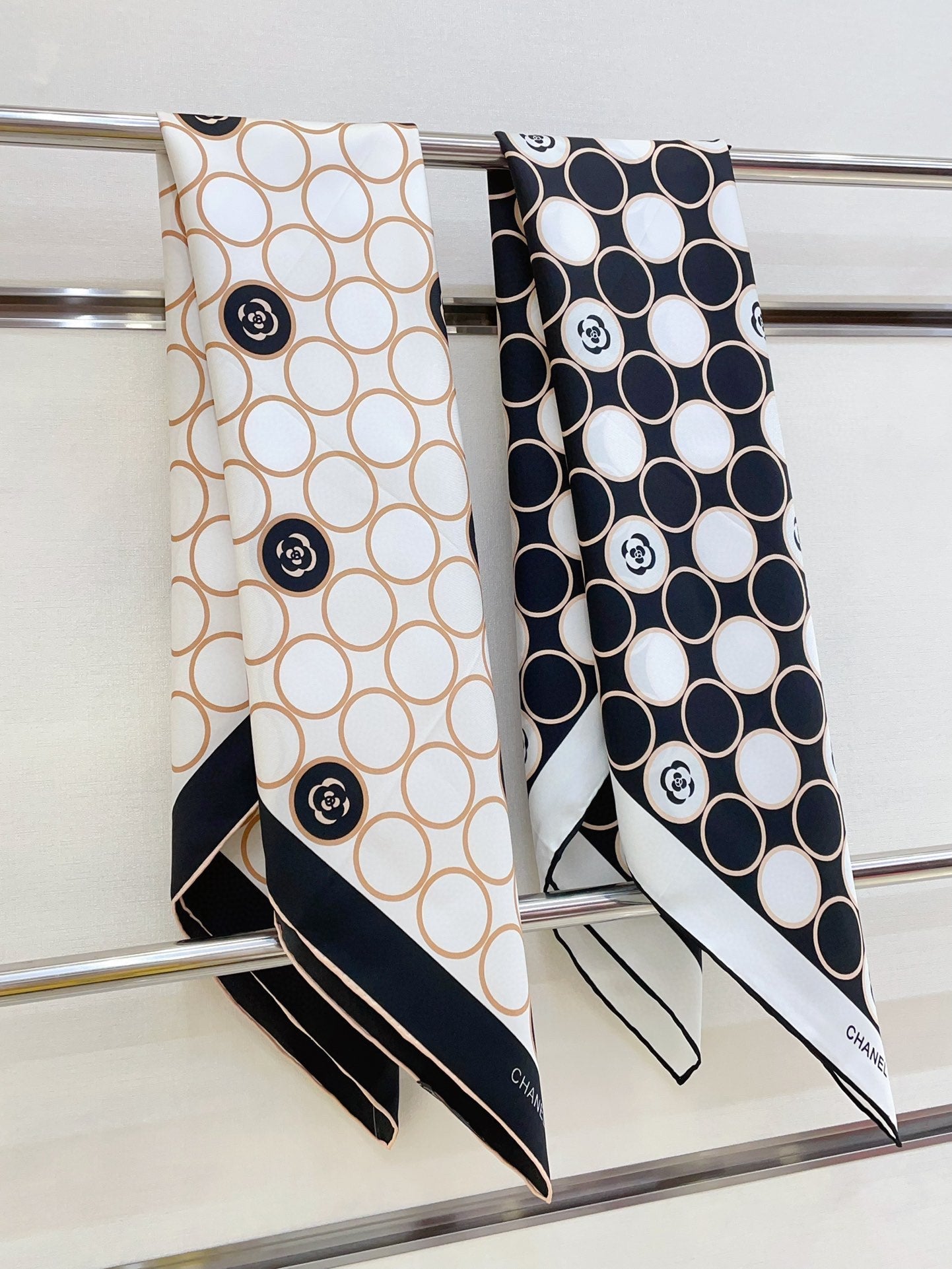 CC Square Scarf 90 CM In Black Camellia Polka Dot Silk 288736
