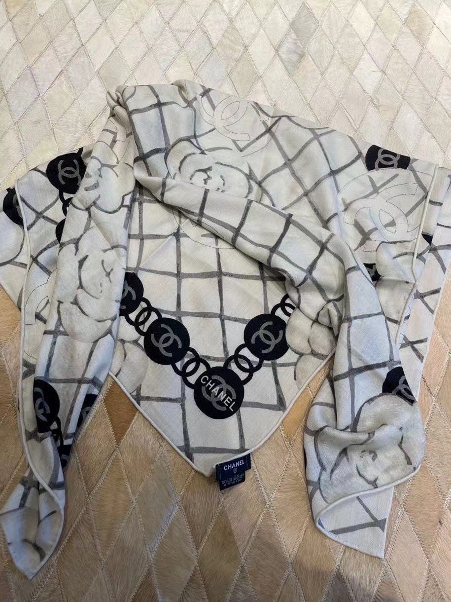 CC Square Scarf 90 CM In Grey Black And White Camellia Logo Print Silk Twill 288739