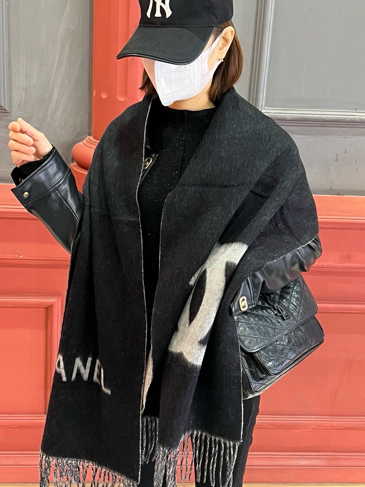 CC Scarf 200 CM In Black Mix Beige Silk Cashmere 324746