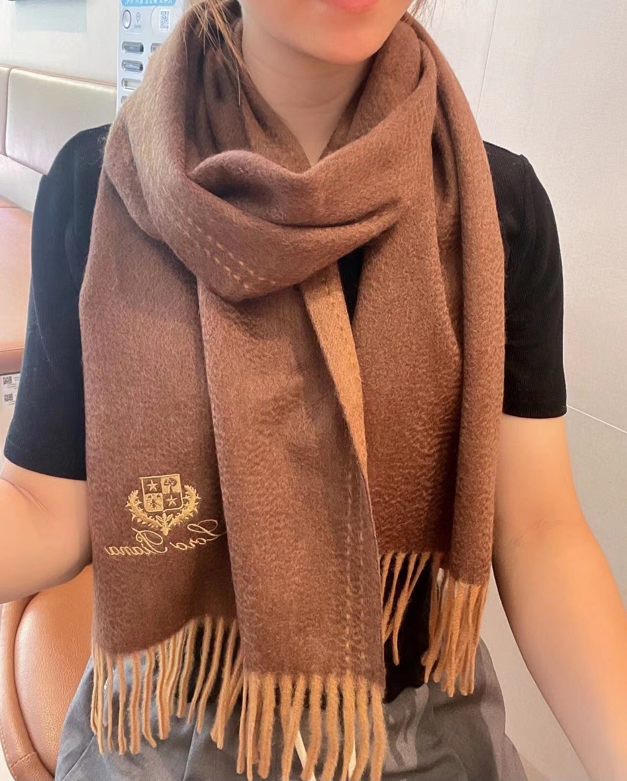 LP Grande Unita Scarf 200 CM In Earth Brown Mix Caramel Cashmere 686571