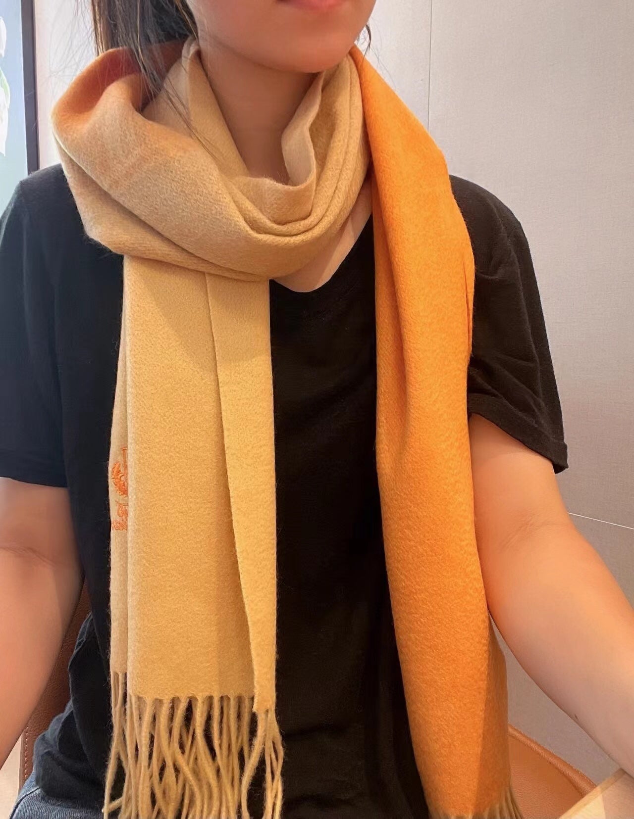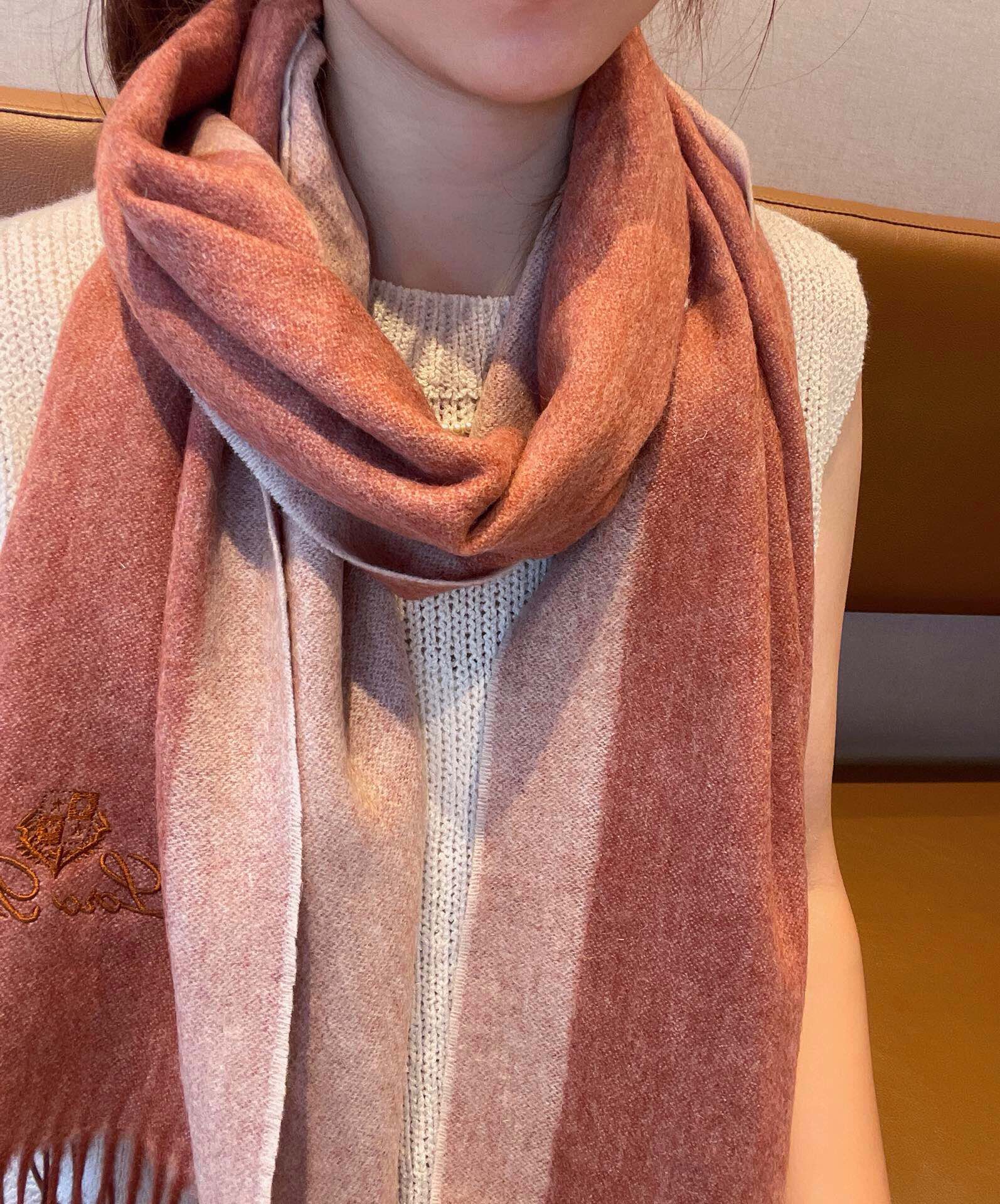 LP Grande Unita Scarf 190 CM In Beige Gradient Orange Cashmere 687750