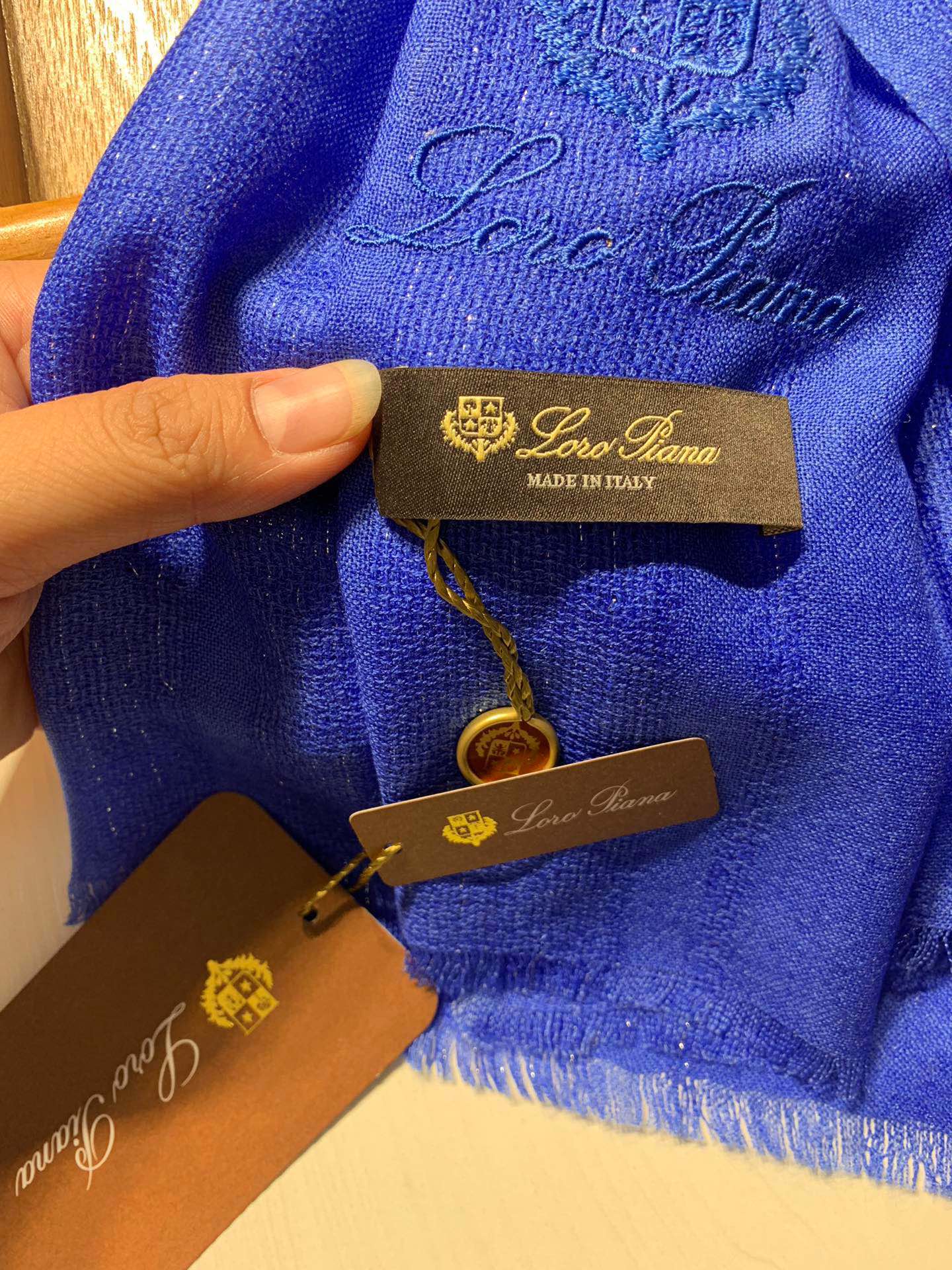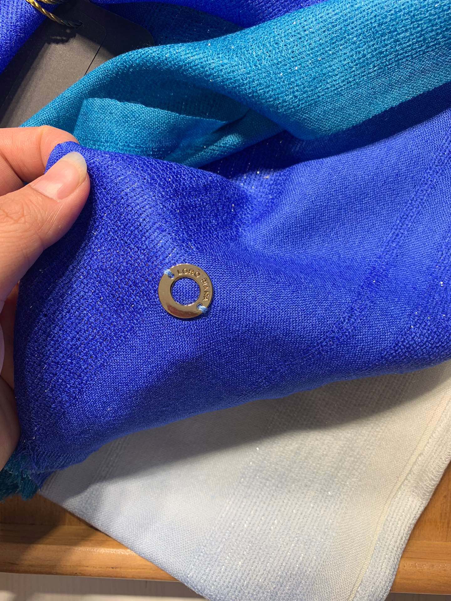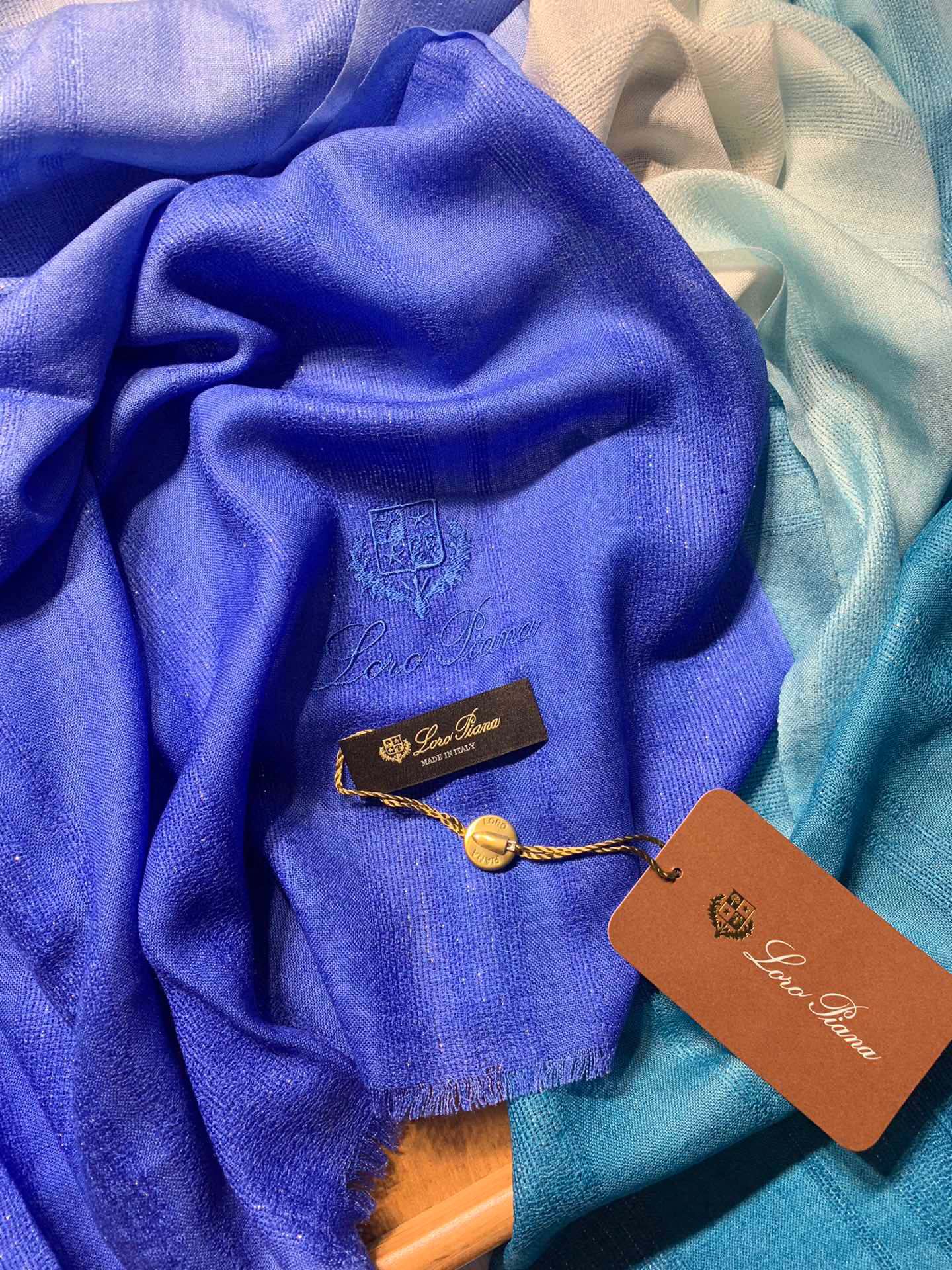 LP Scarf 190 CM In Blue White Gradient Dark Green Cashmere And Silk 945595