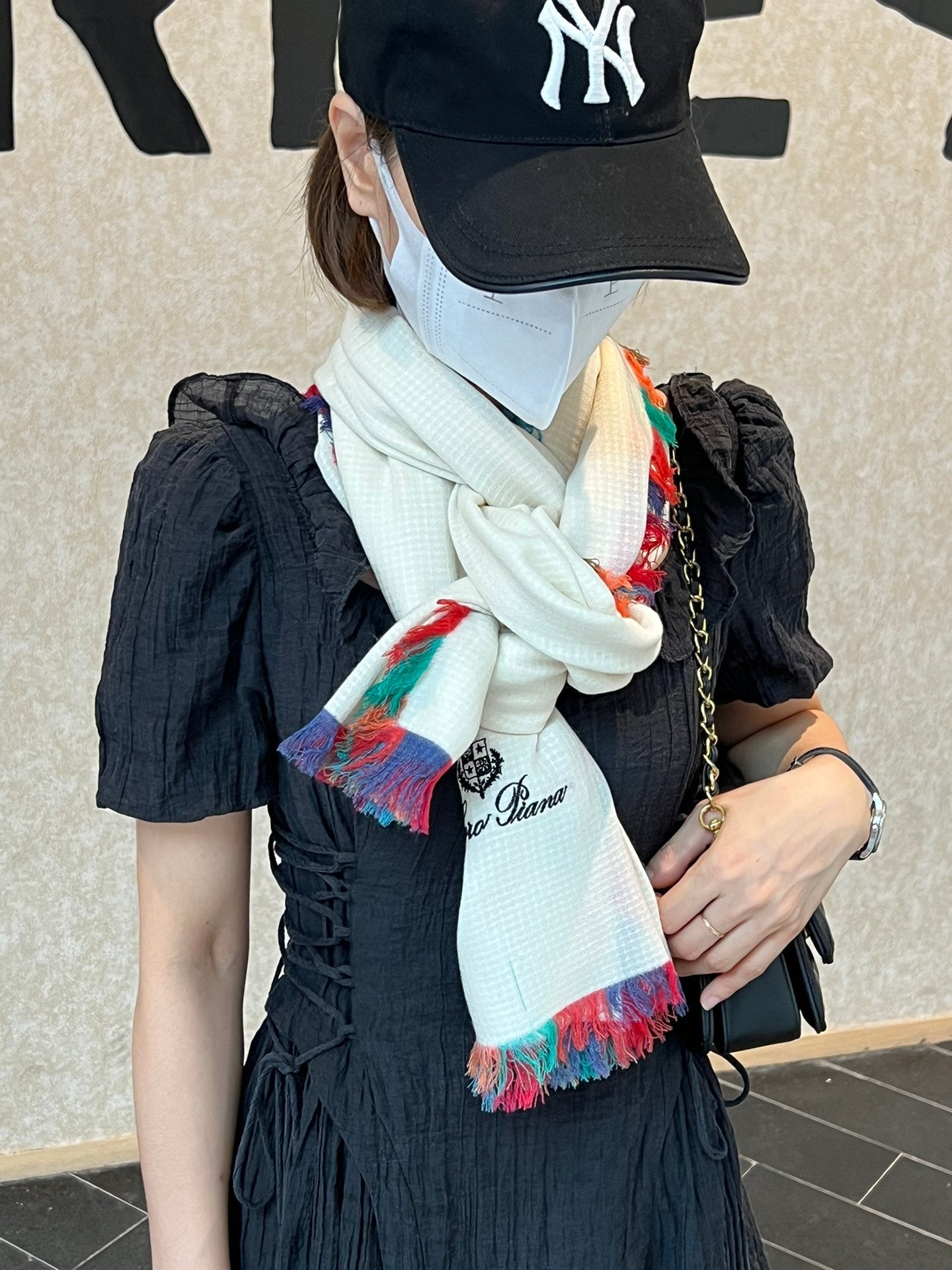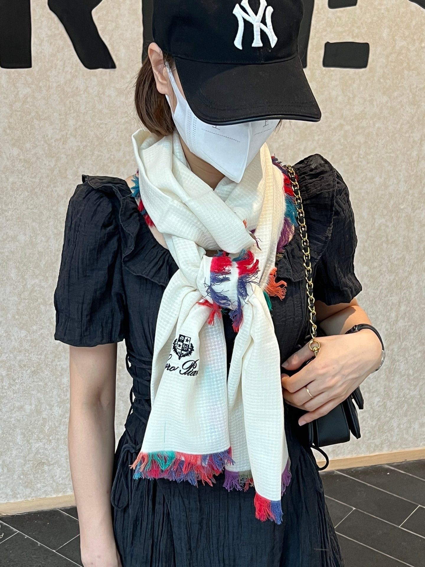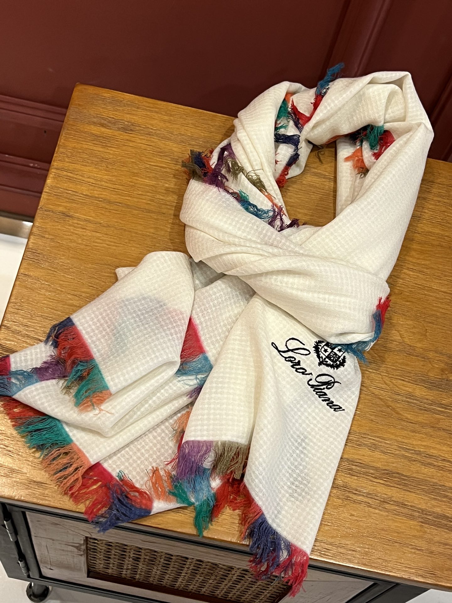 LP Scarf 190 CM In White Colorful Waffle Fabric Woven 975484