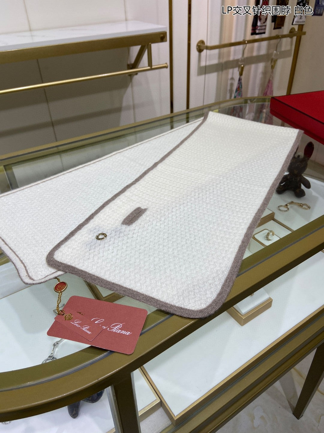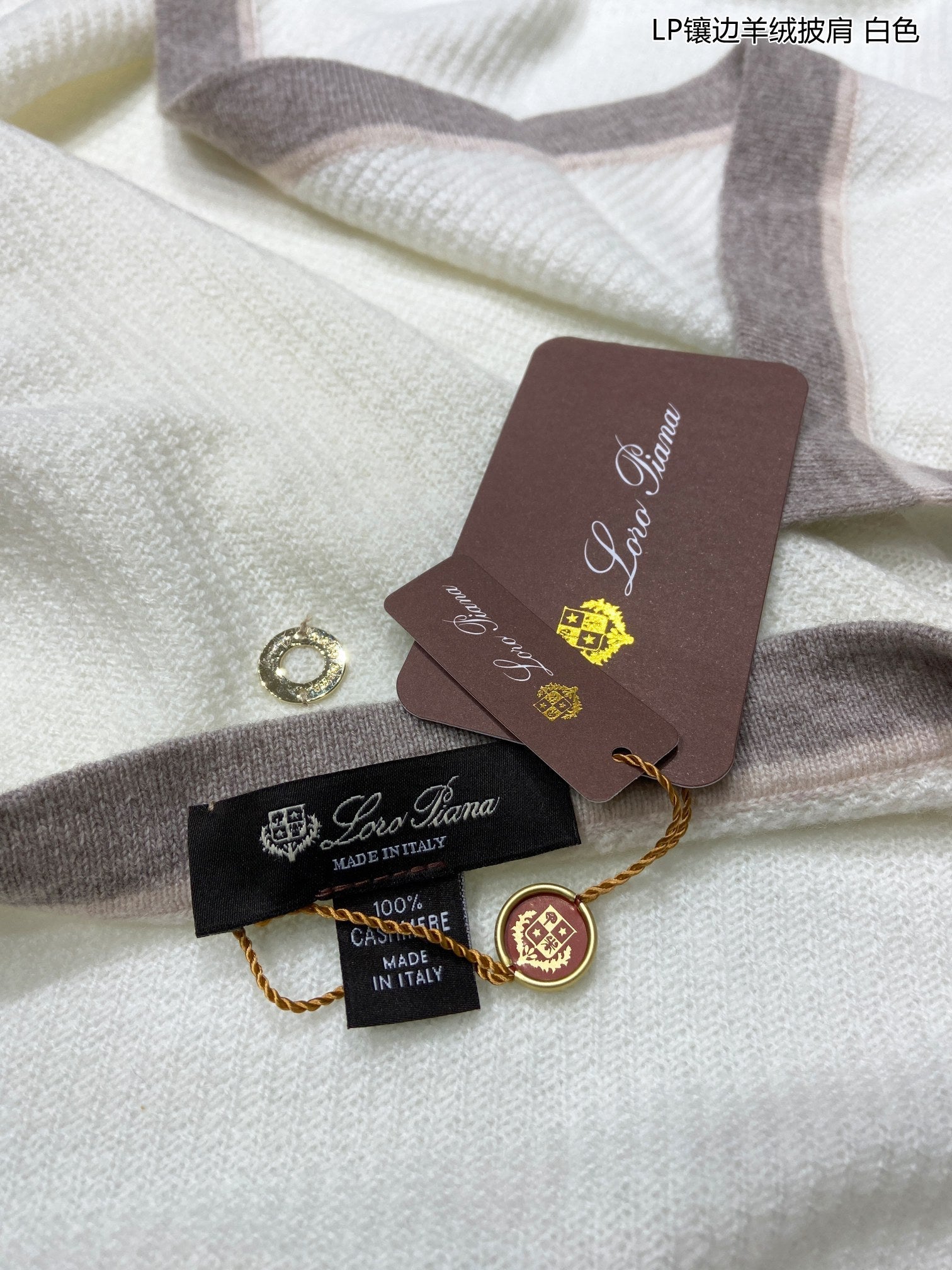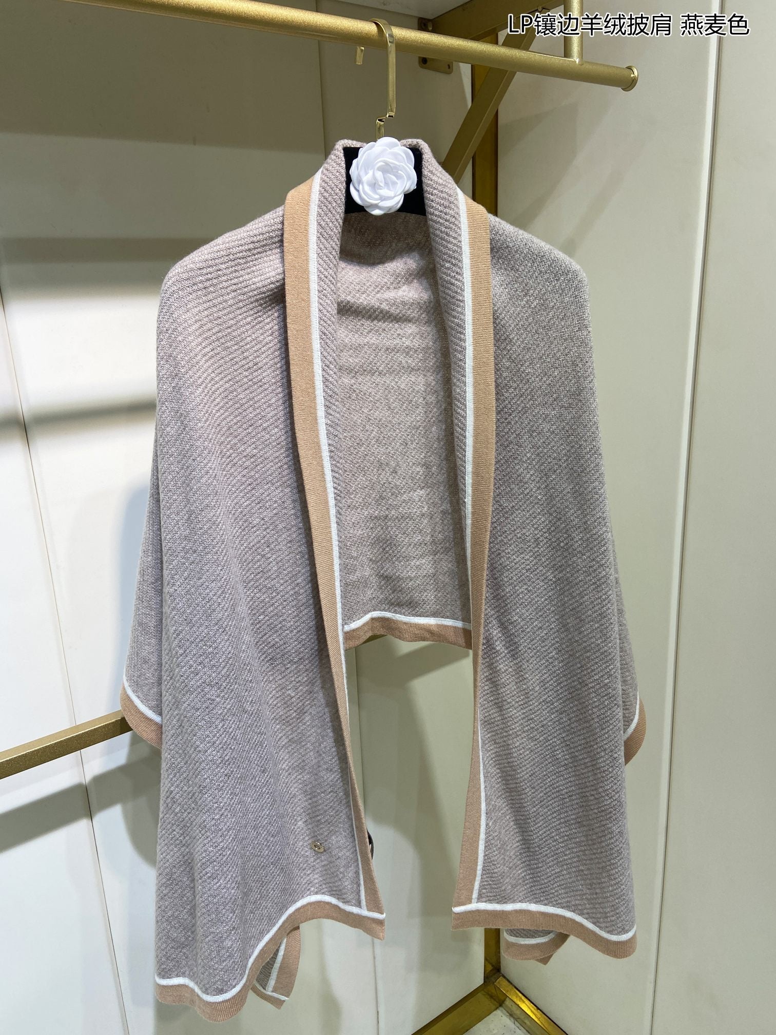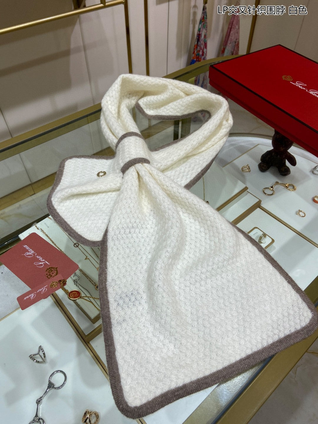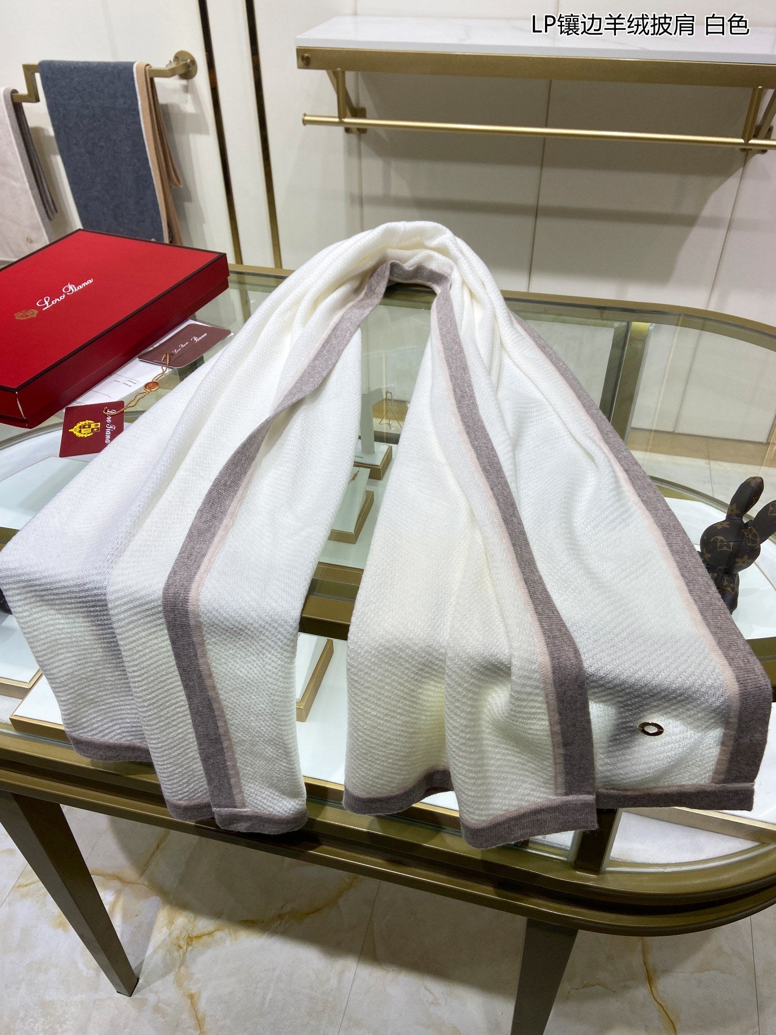 LP Scarf 125 CM In White With Earth Brown Border Cashmere 201757