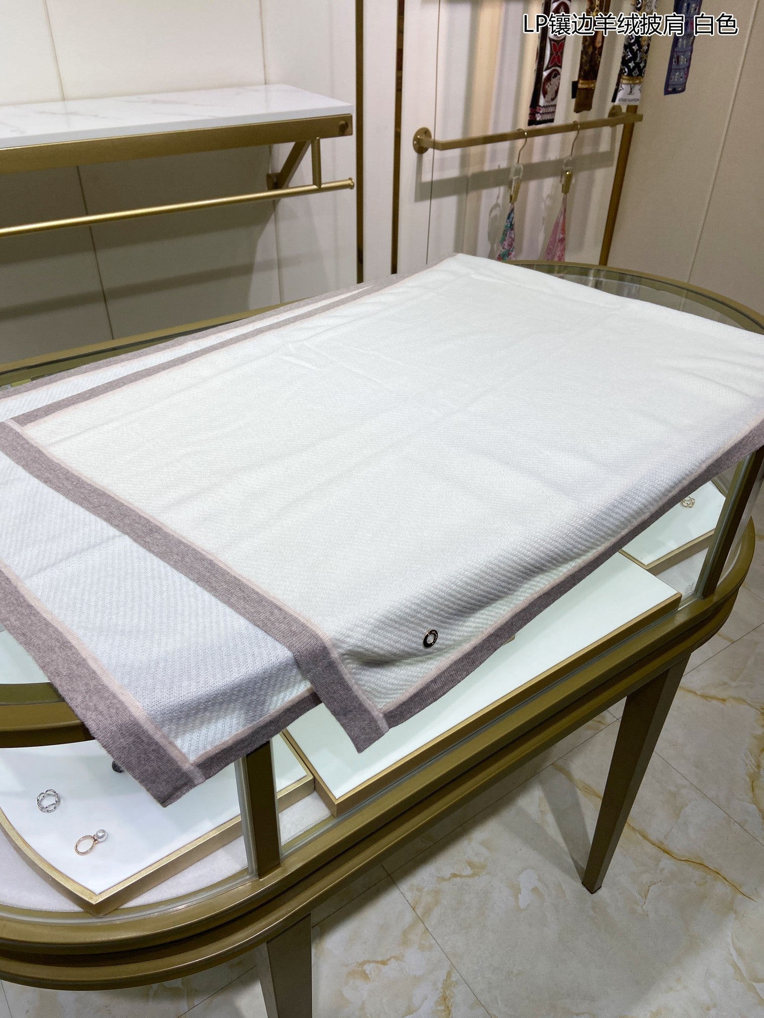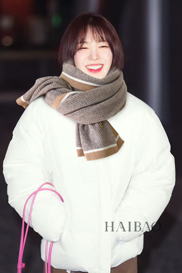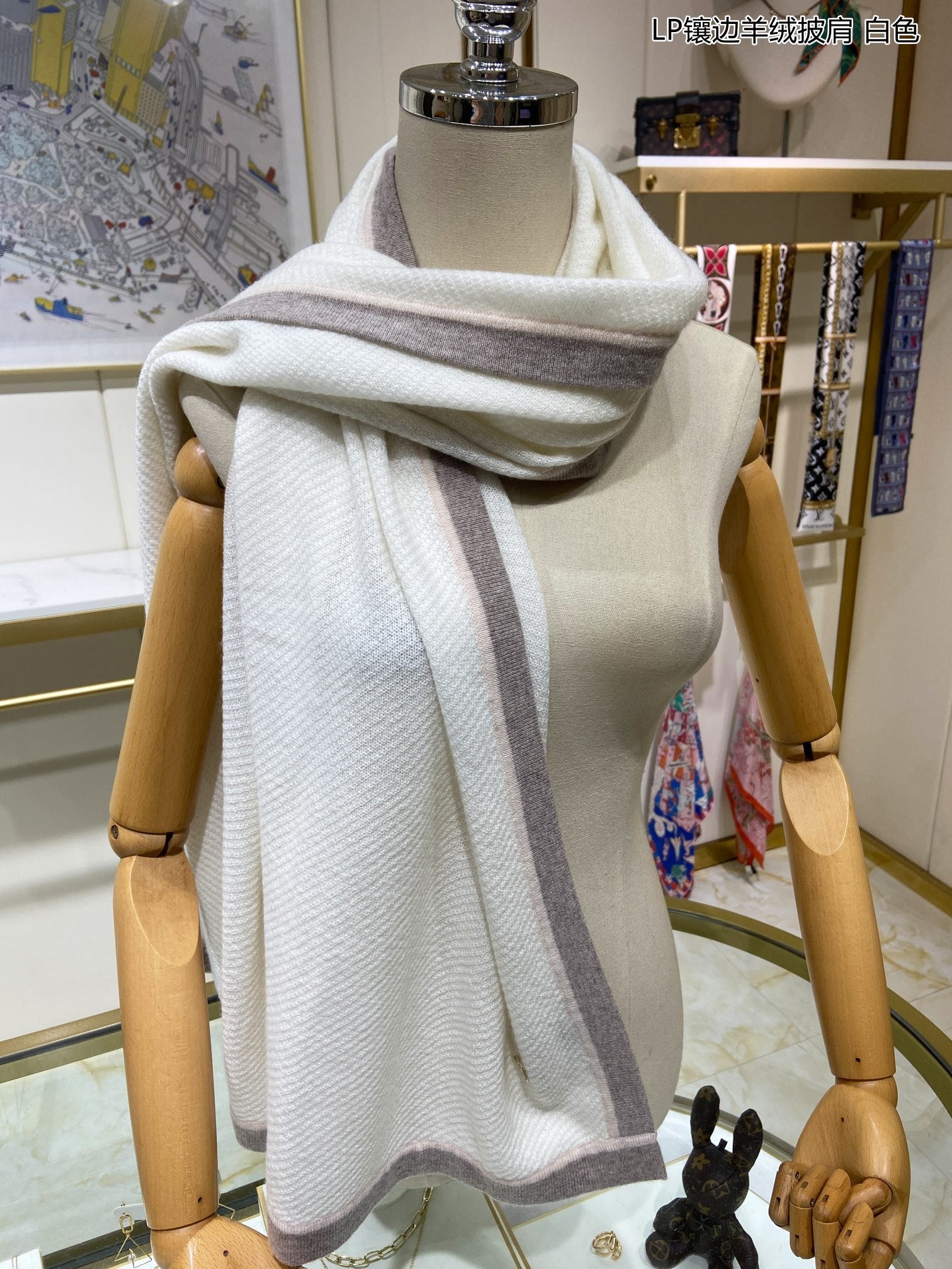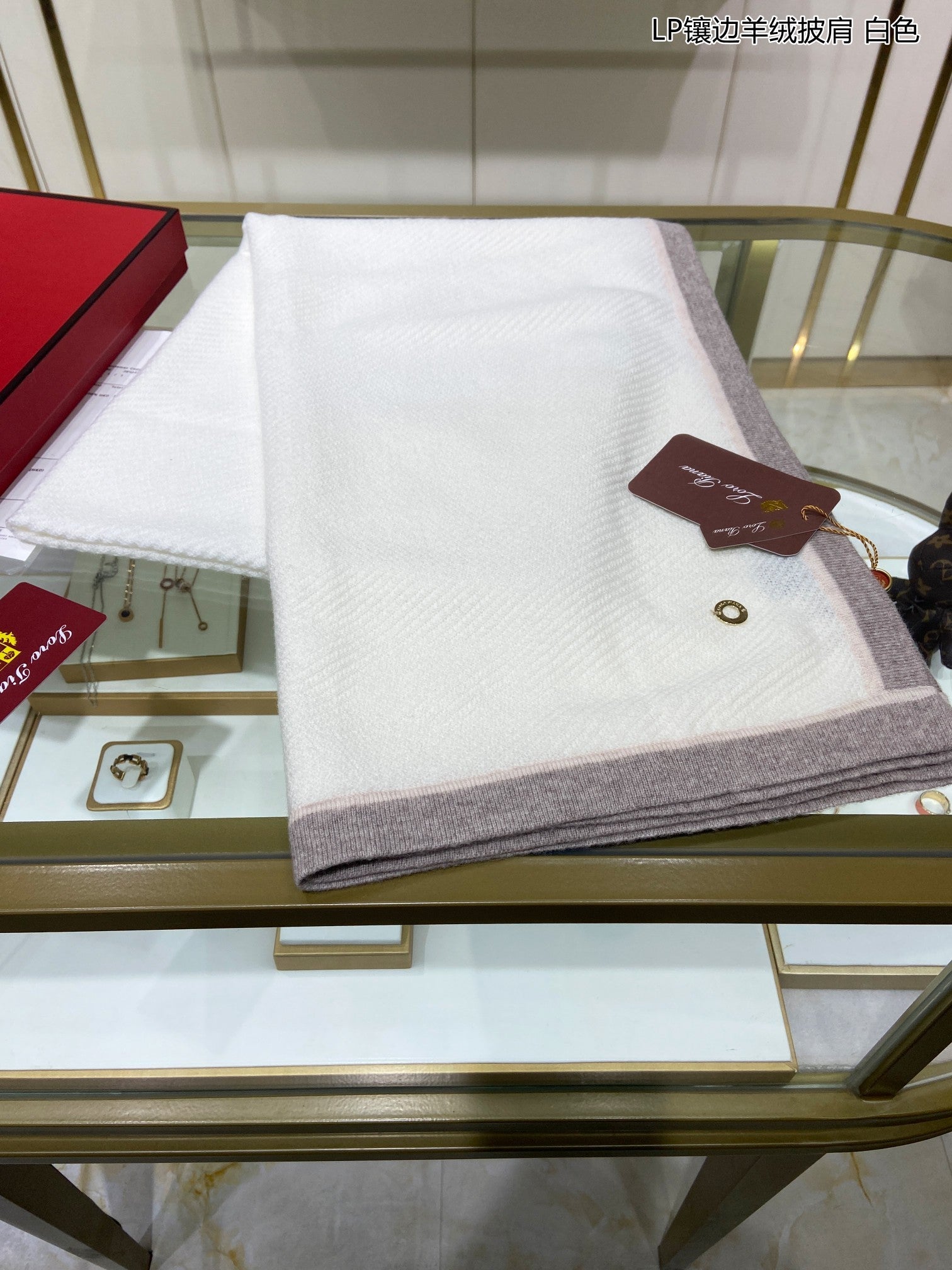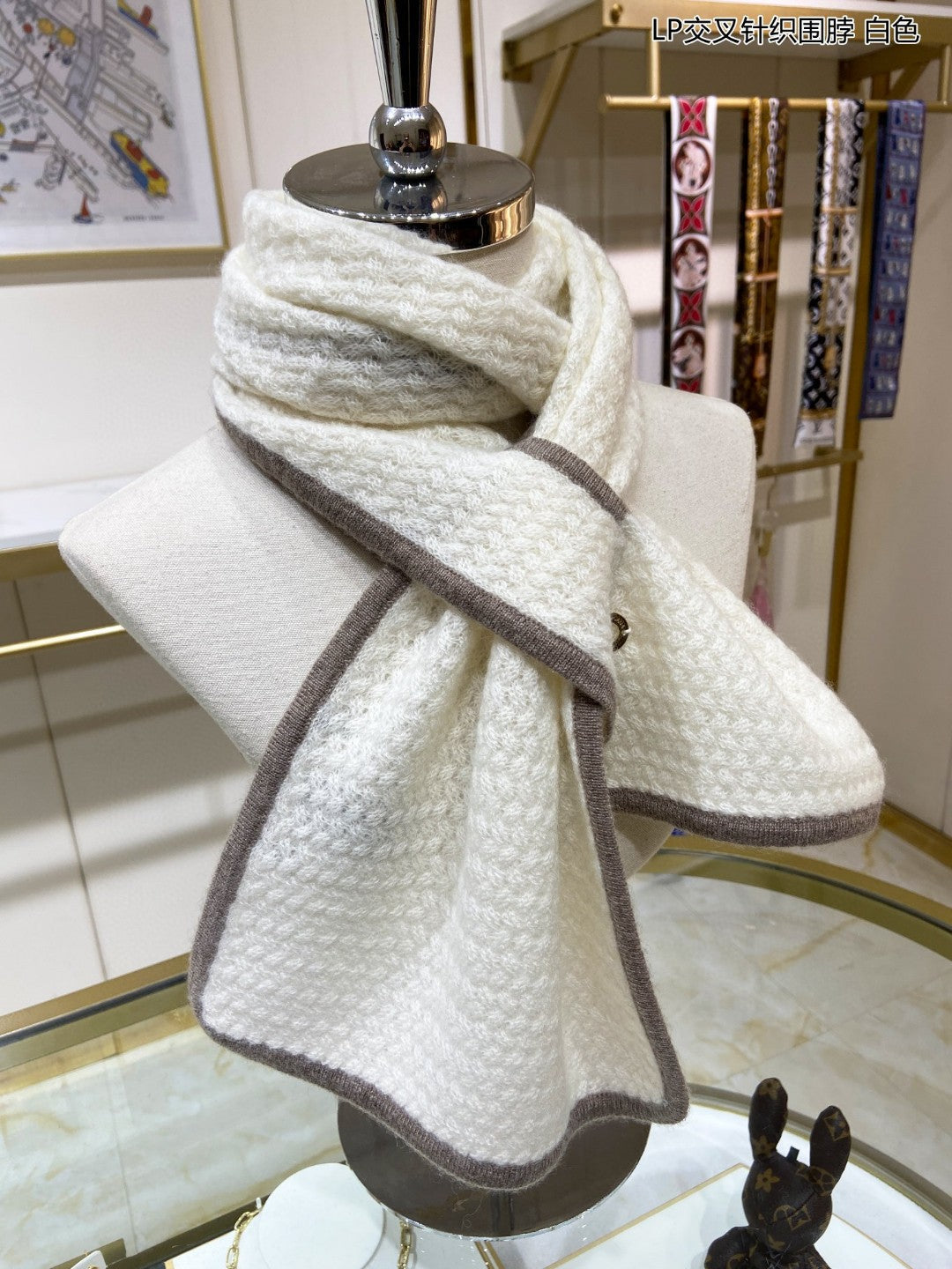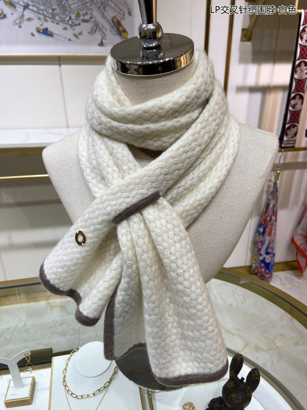 LP Scarf 125 CM In White With Earth Brown Border Cashmere 201757