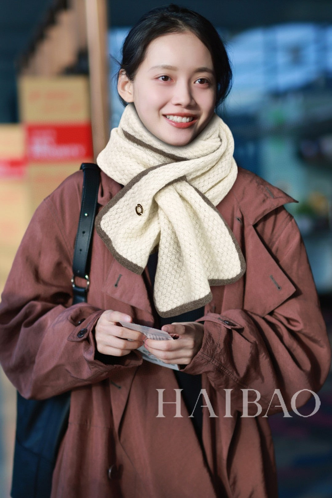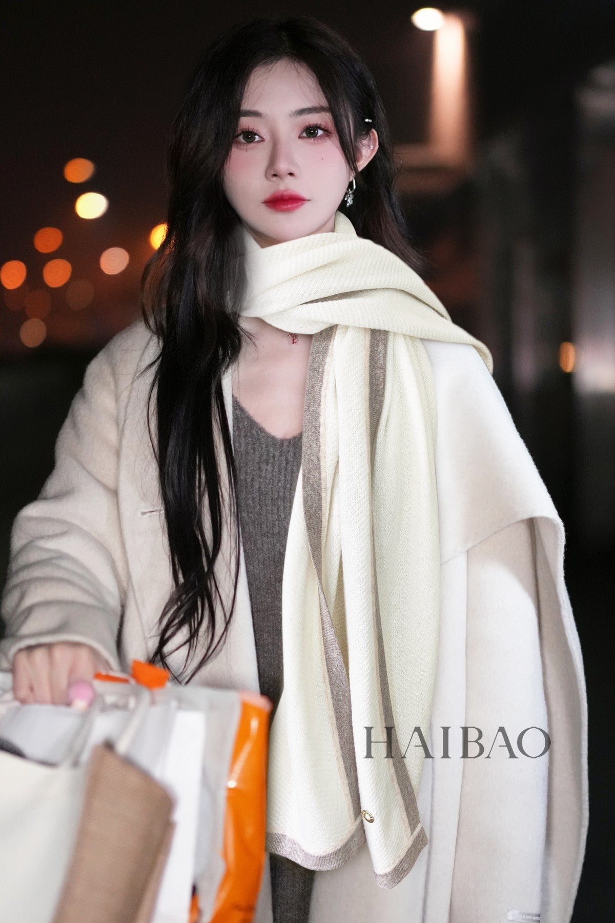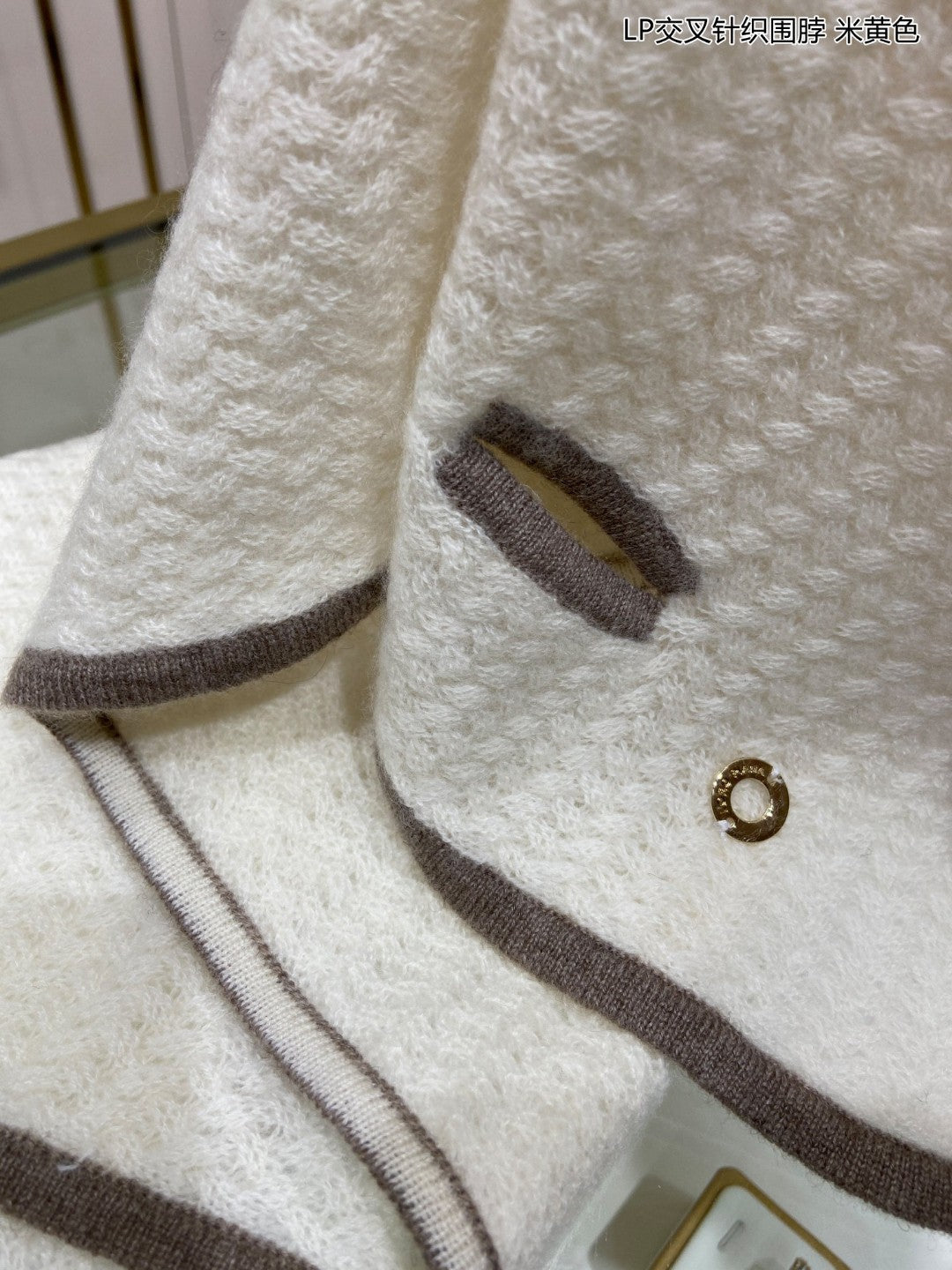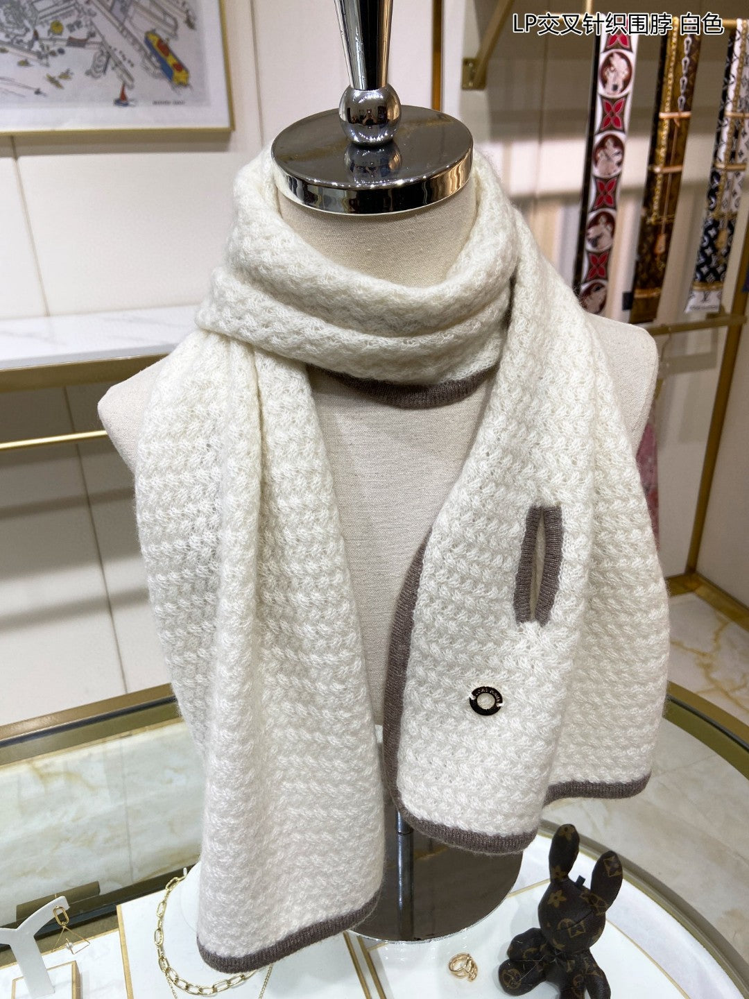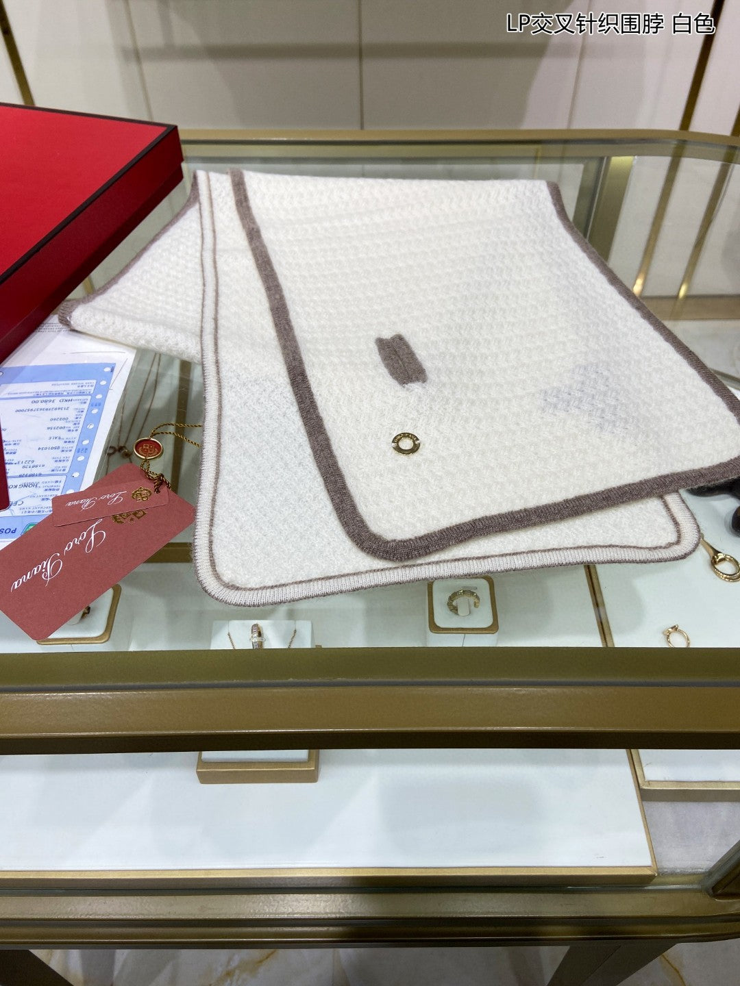 LP Scarf 125 CM In White With Earth Brown Border Cashmere 201757