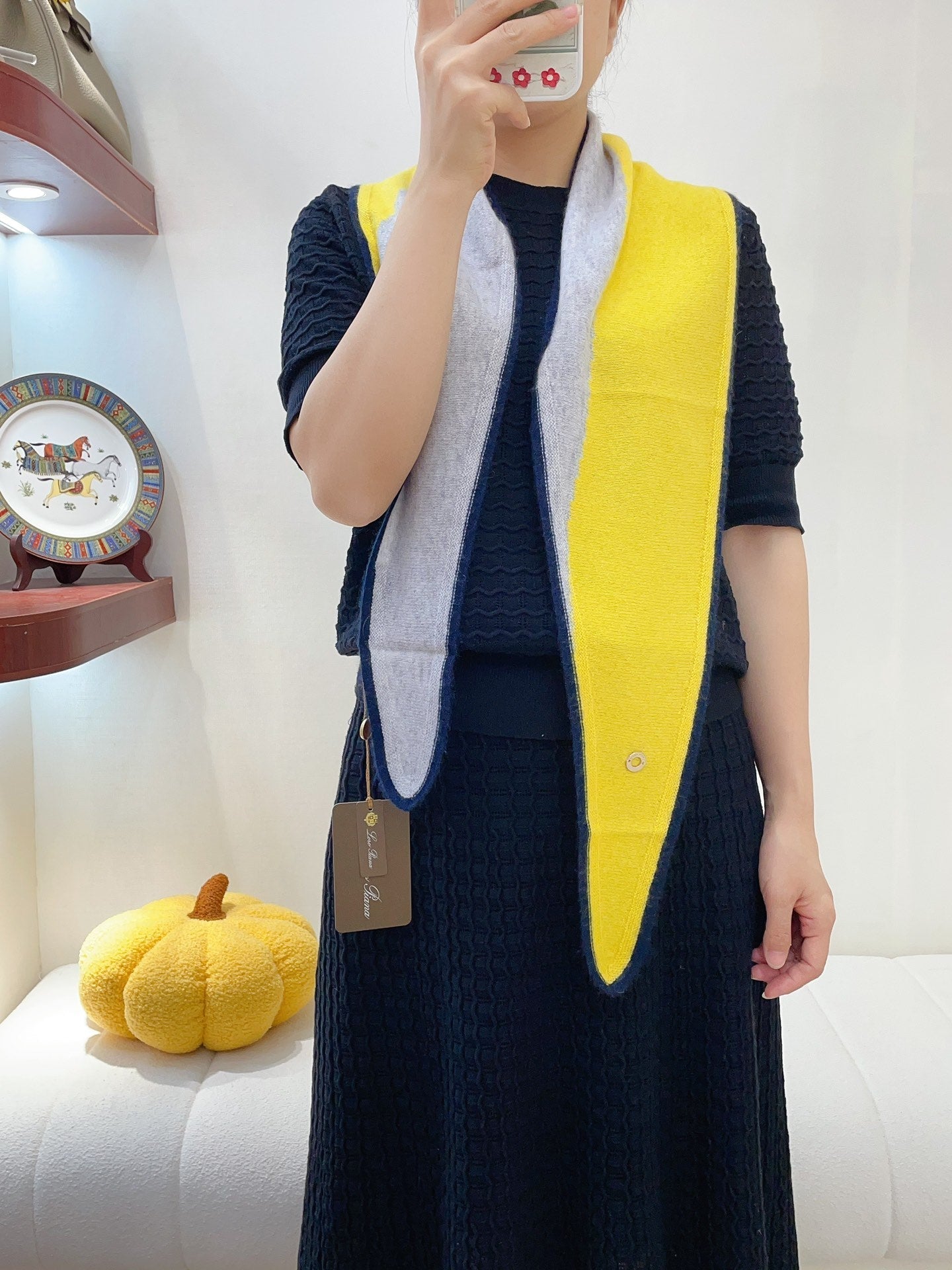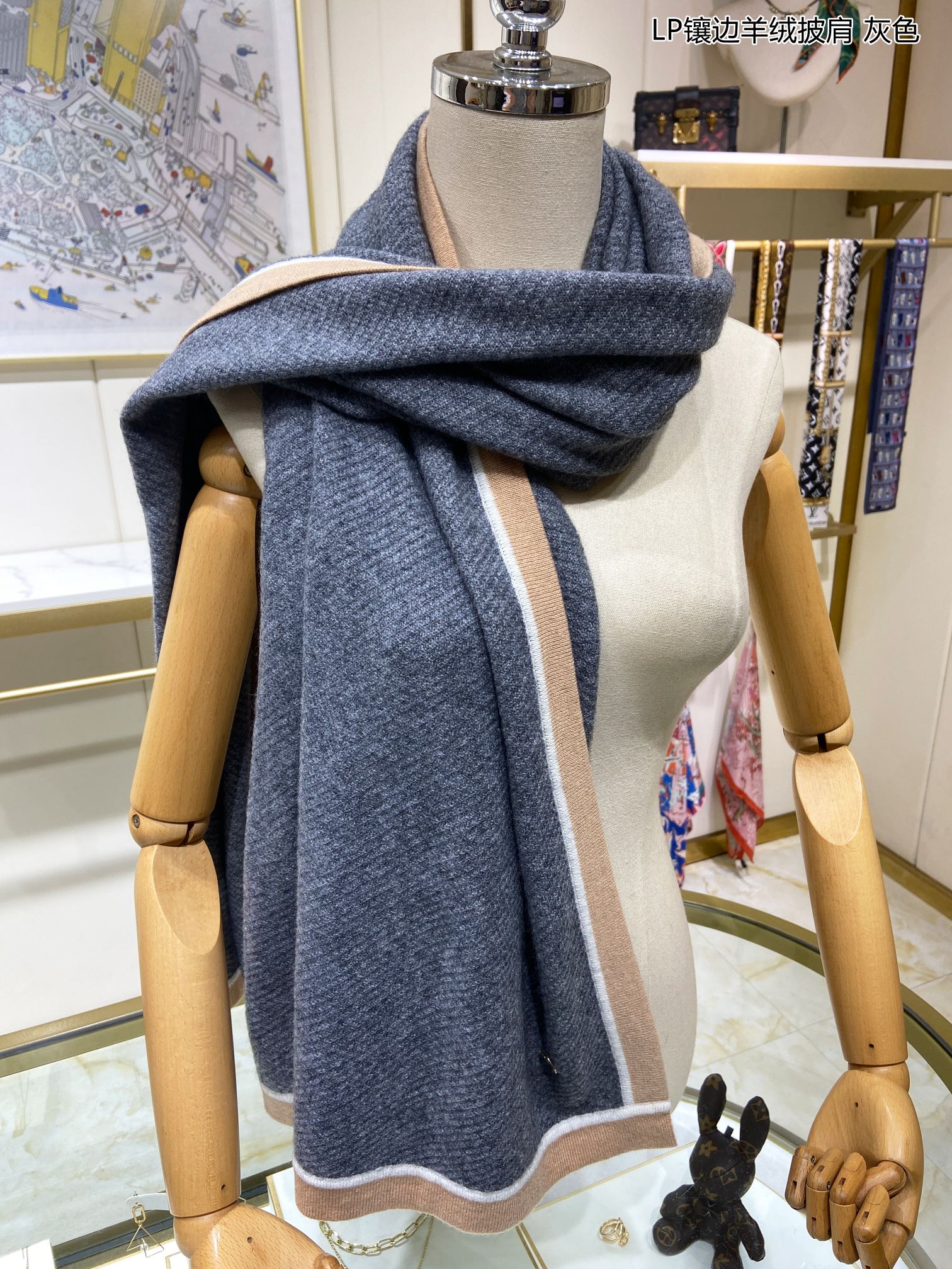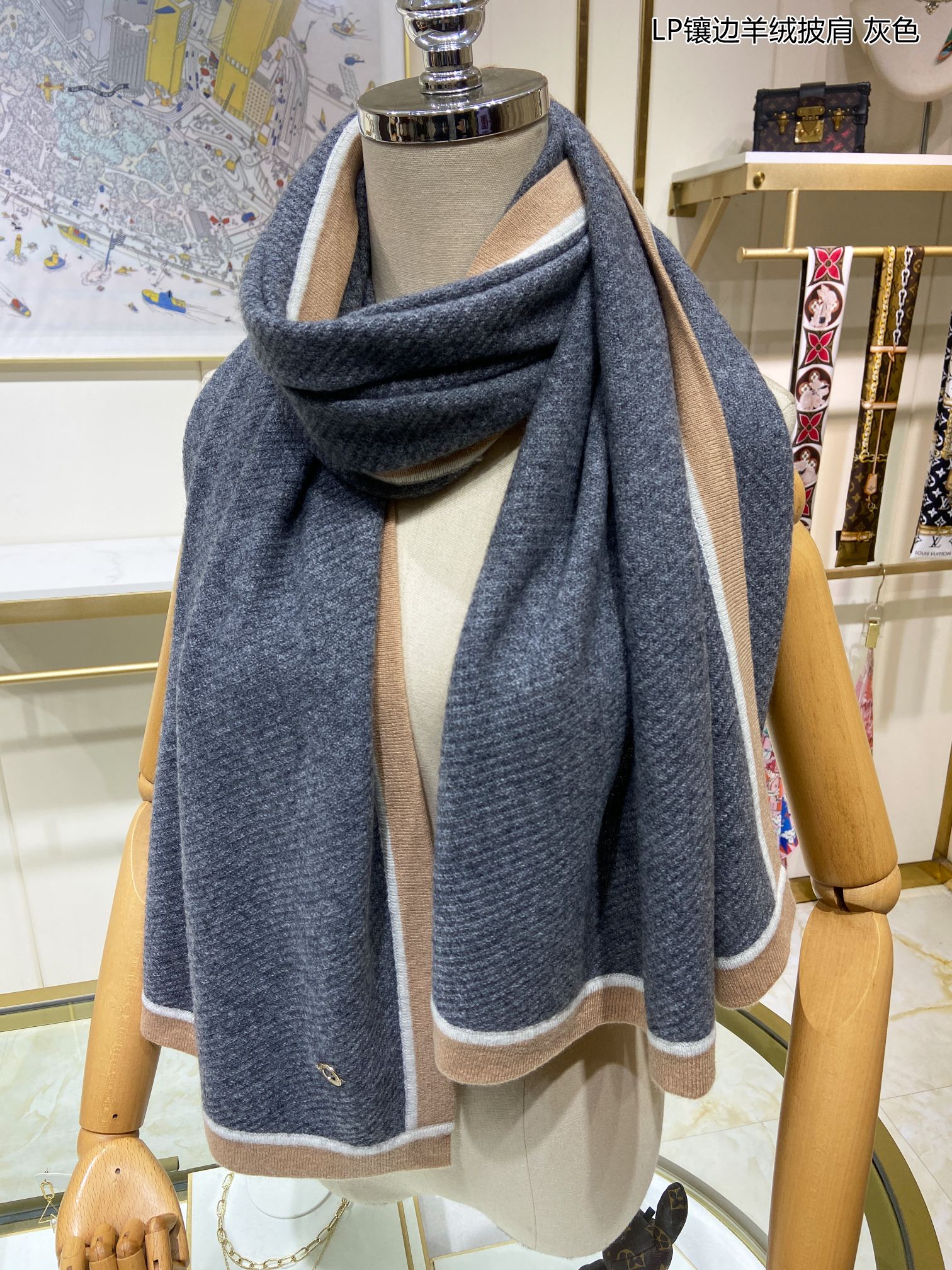 LP Yodo Scarf 150 CM In Grey Mix Yellow Cashmere 130489