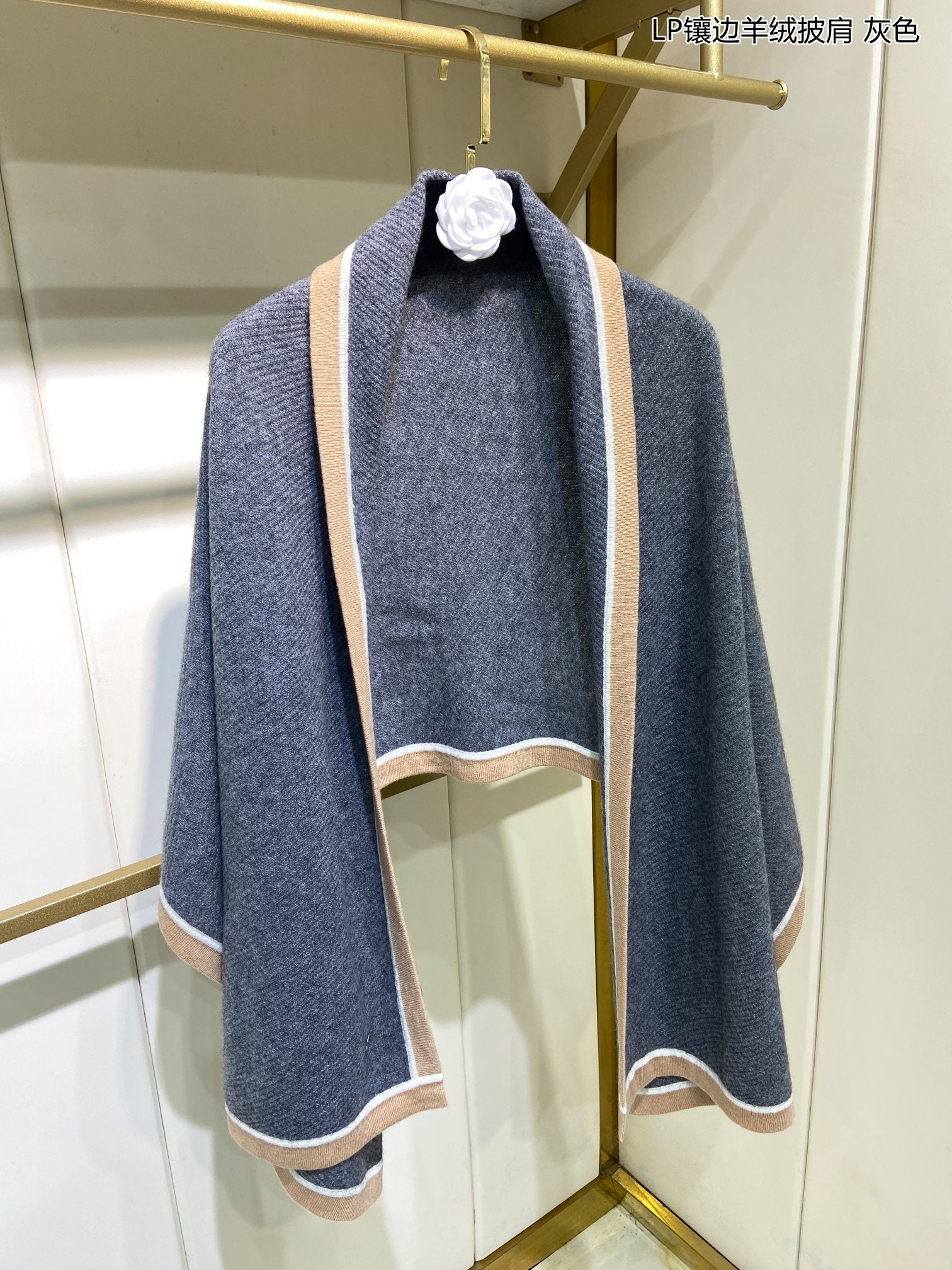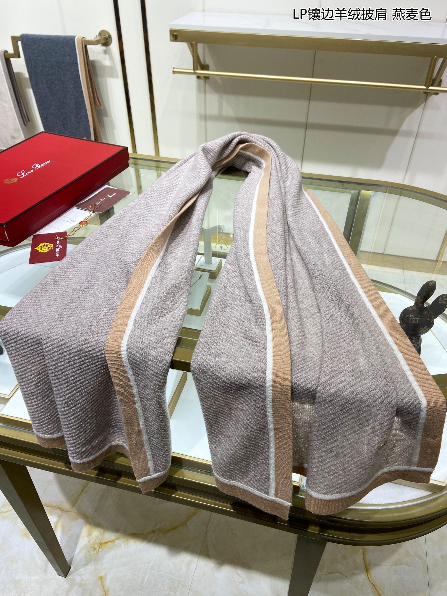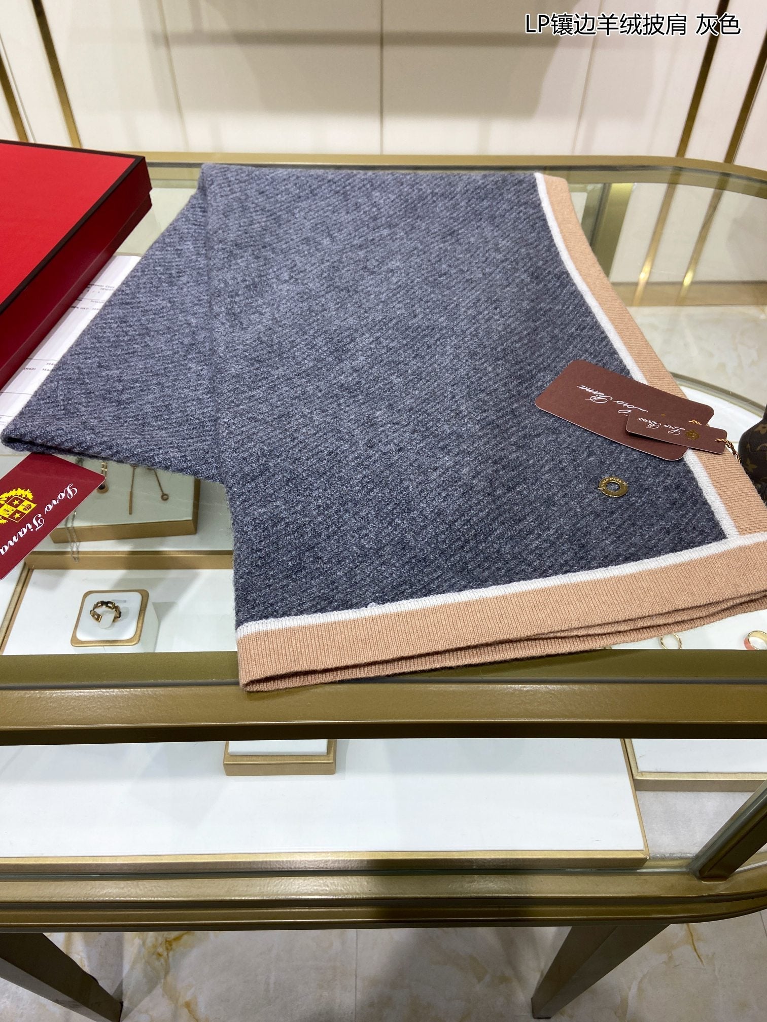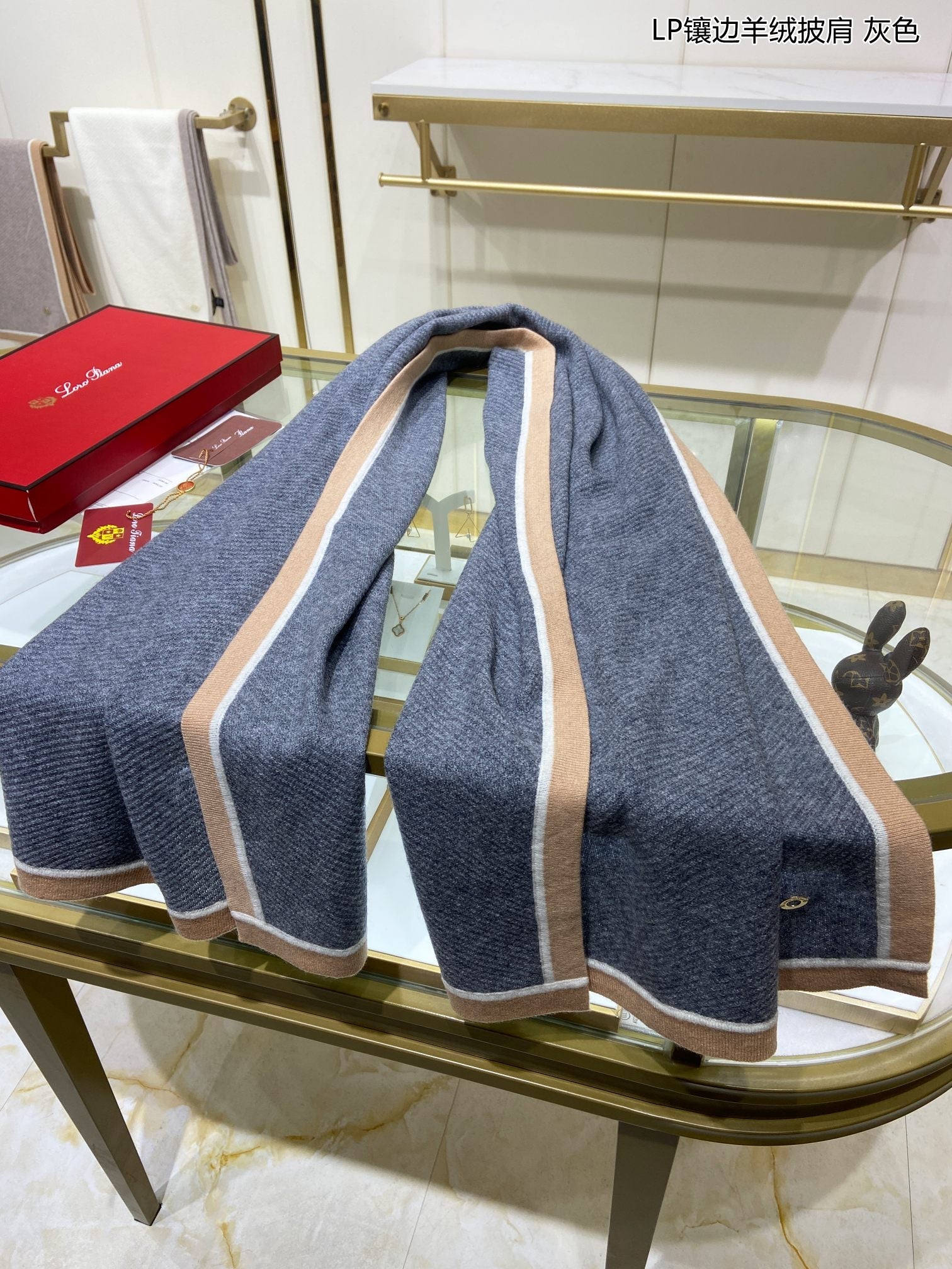 LP Grande Unita Scarf 180 CM In Light Grey With Light Brown Cashmere 175044