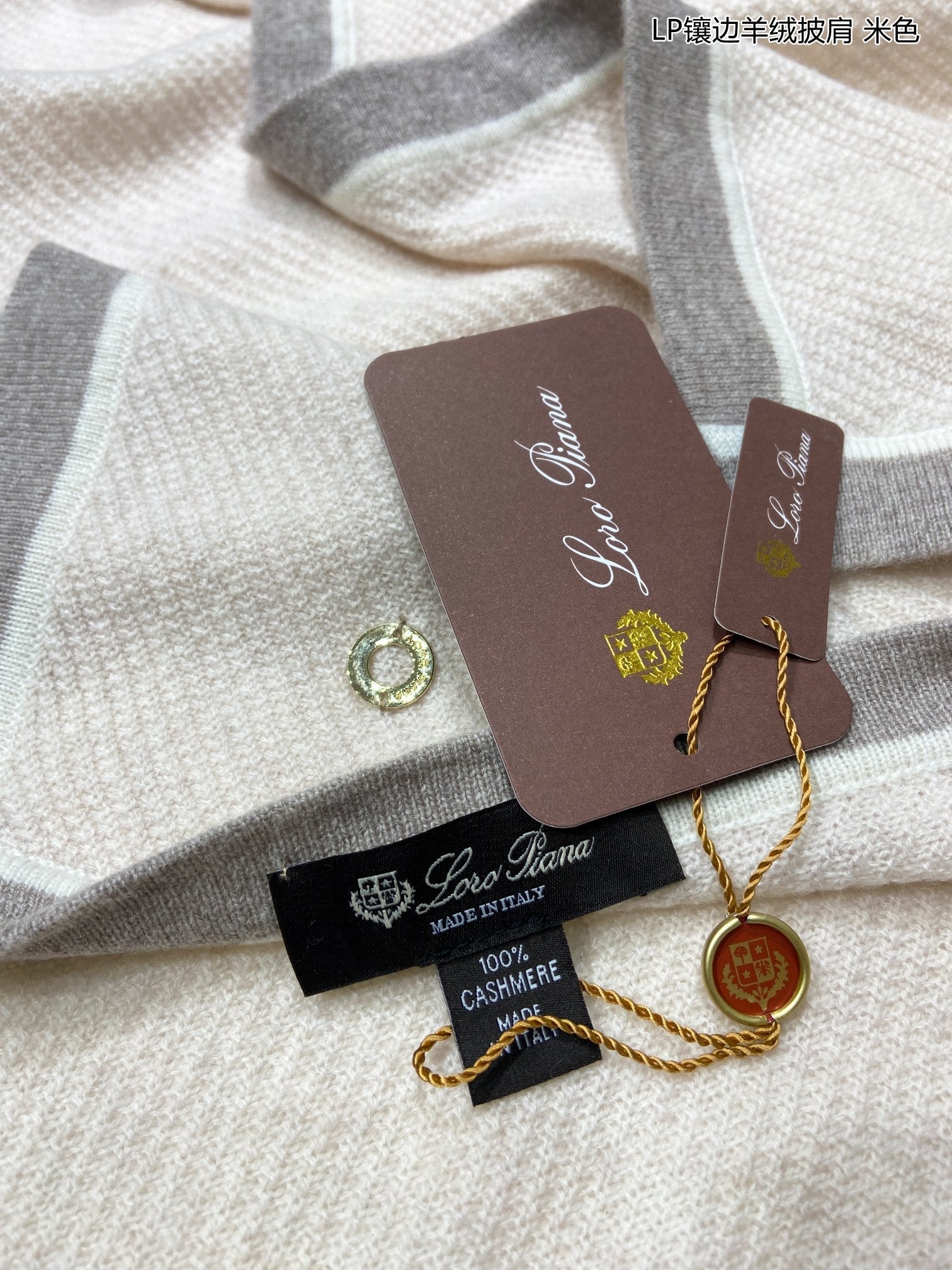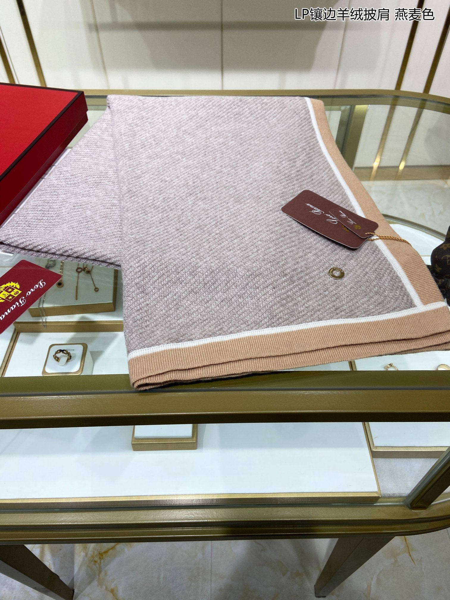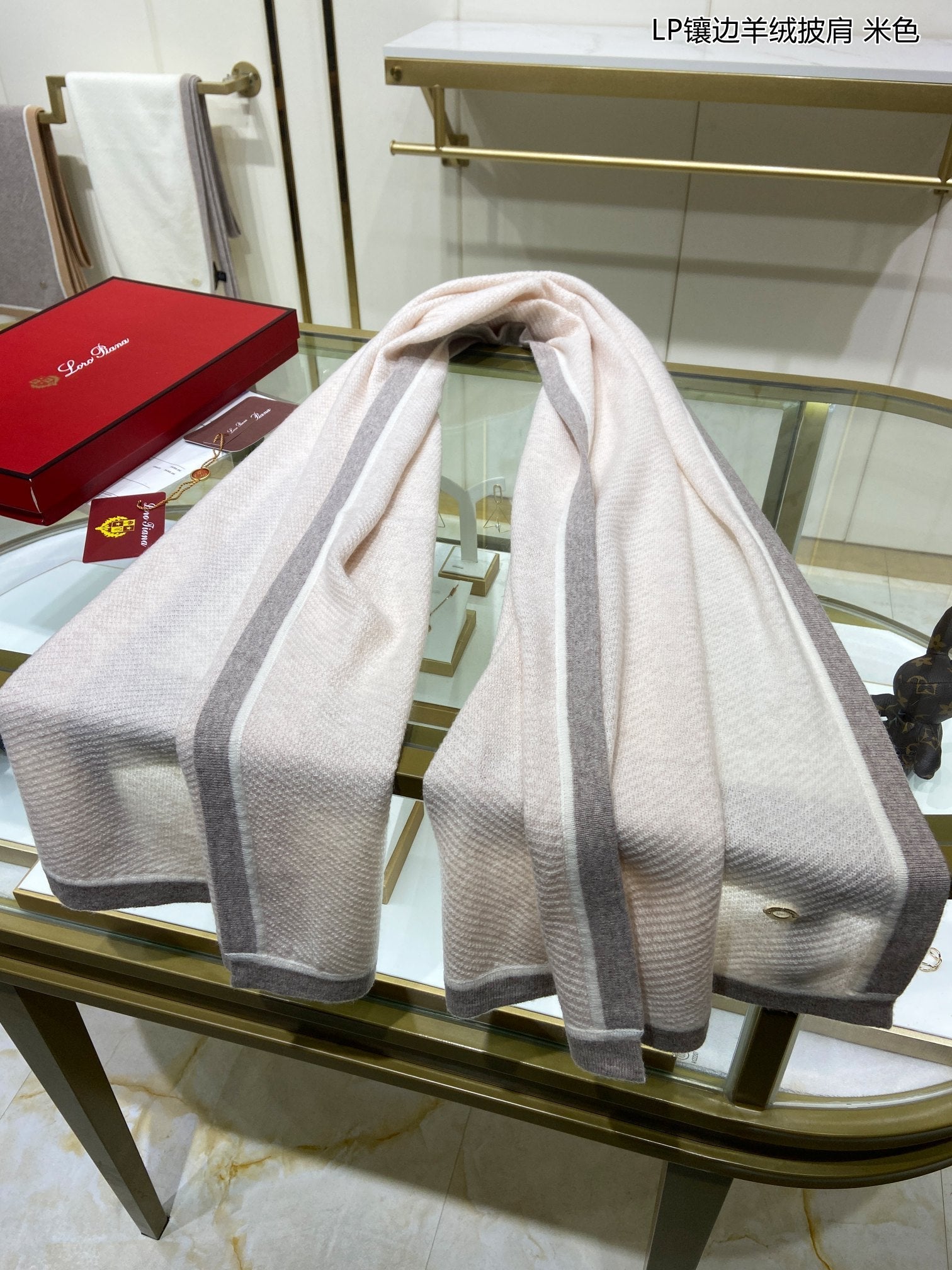 LP Grande Unita Scarf 180 CM In Light Grey With Light Brown Cashmere 175044