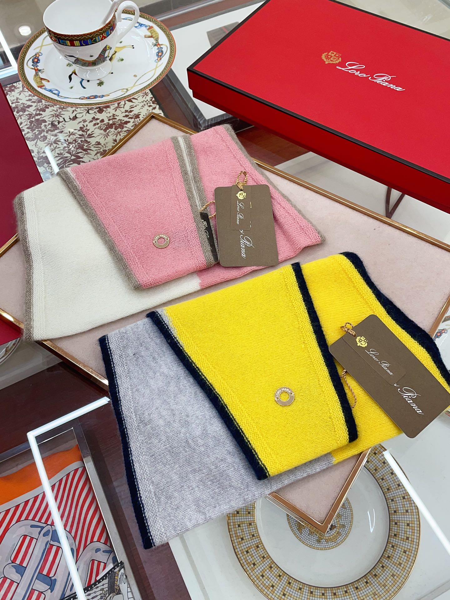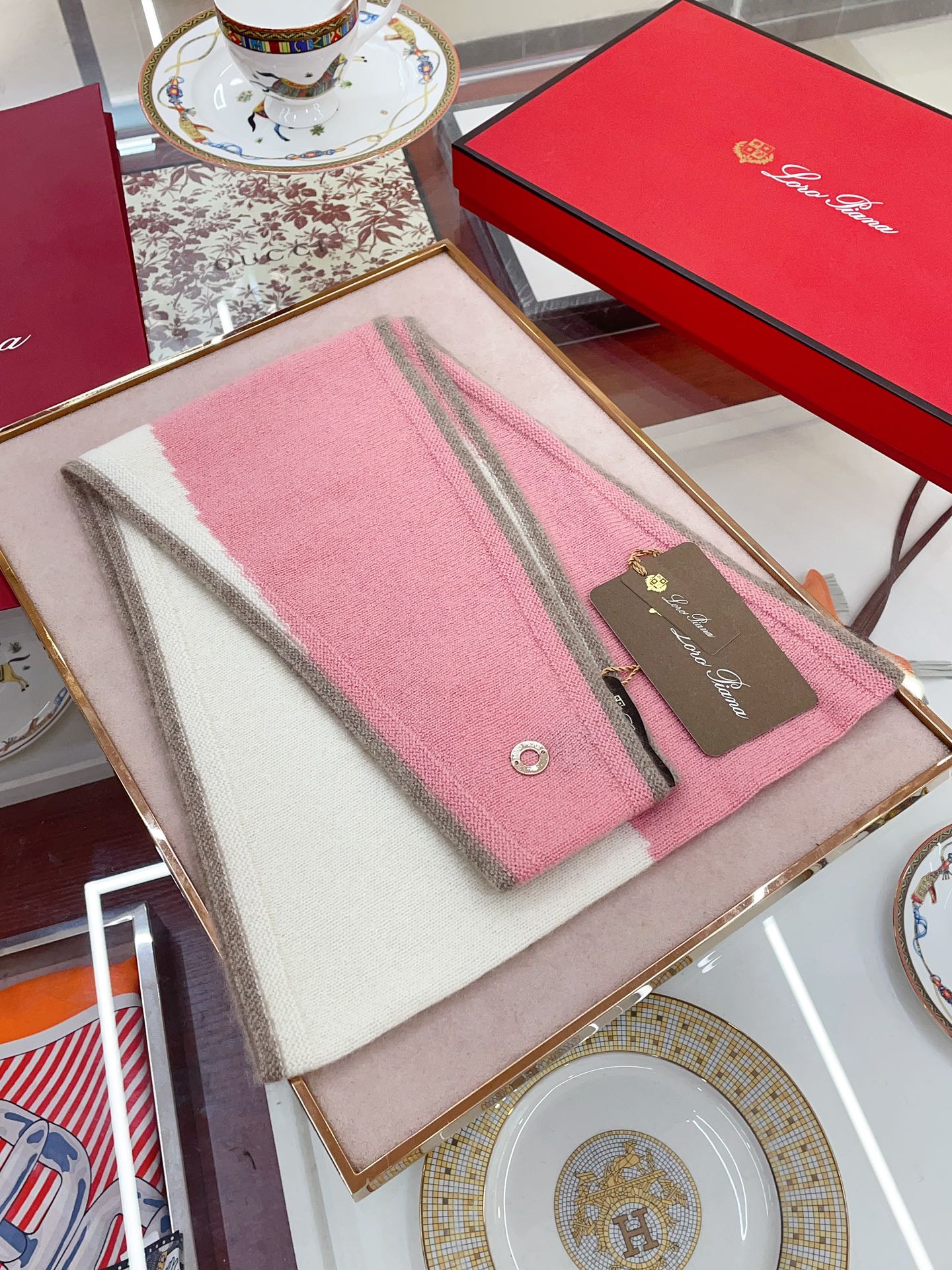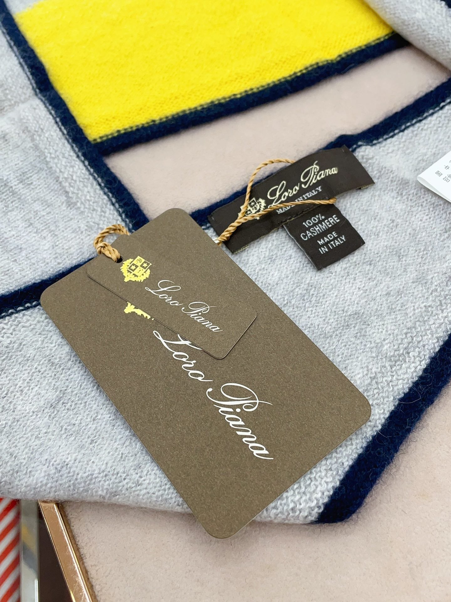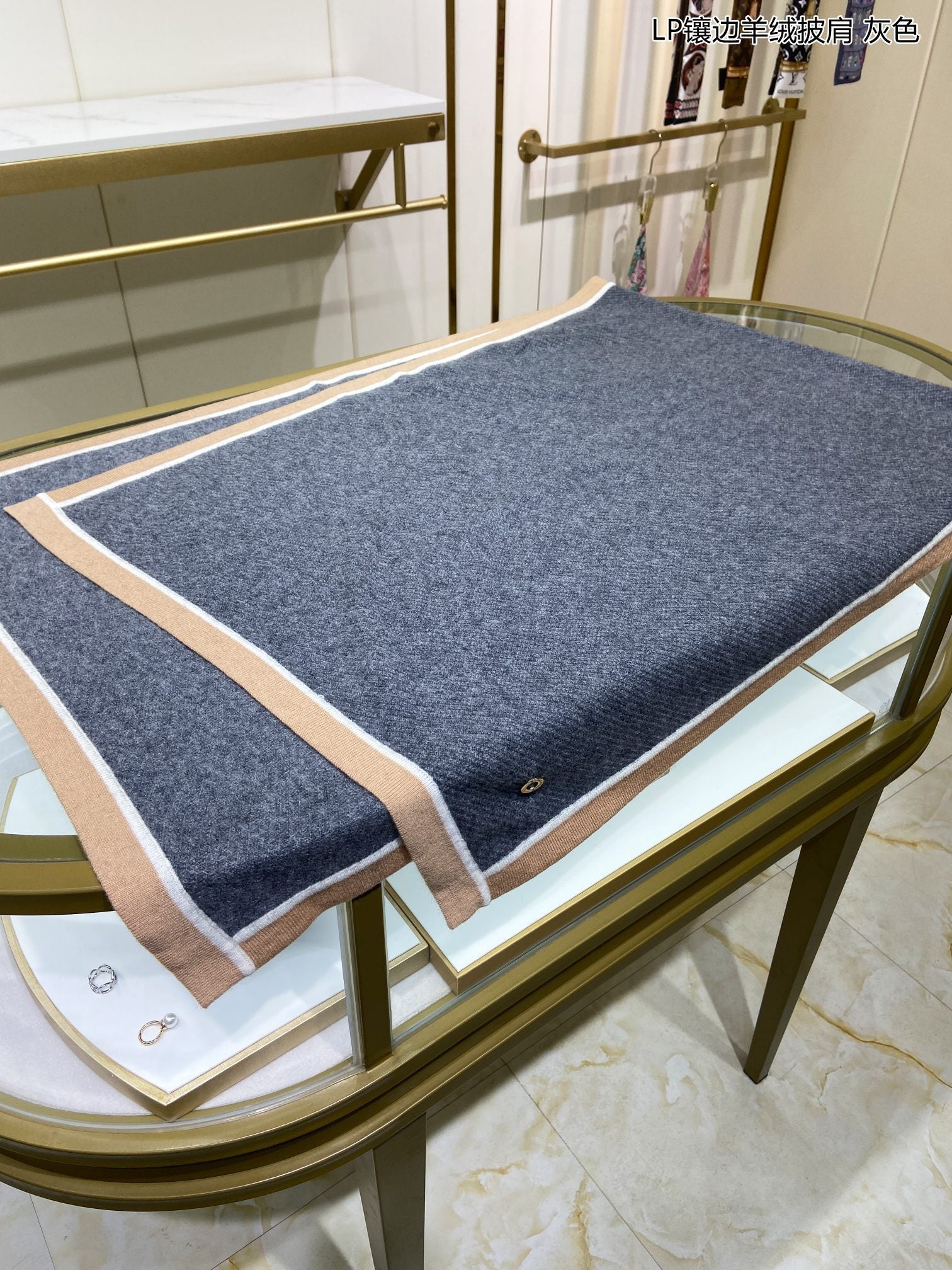 LP Grande Unita Scarf 180 CM In Light Grey With Light Brown Cashmere 175044