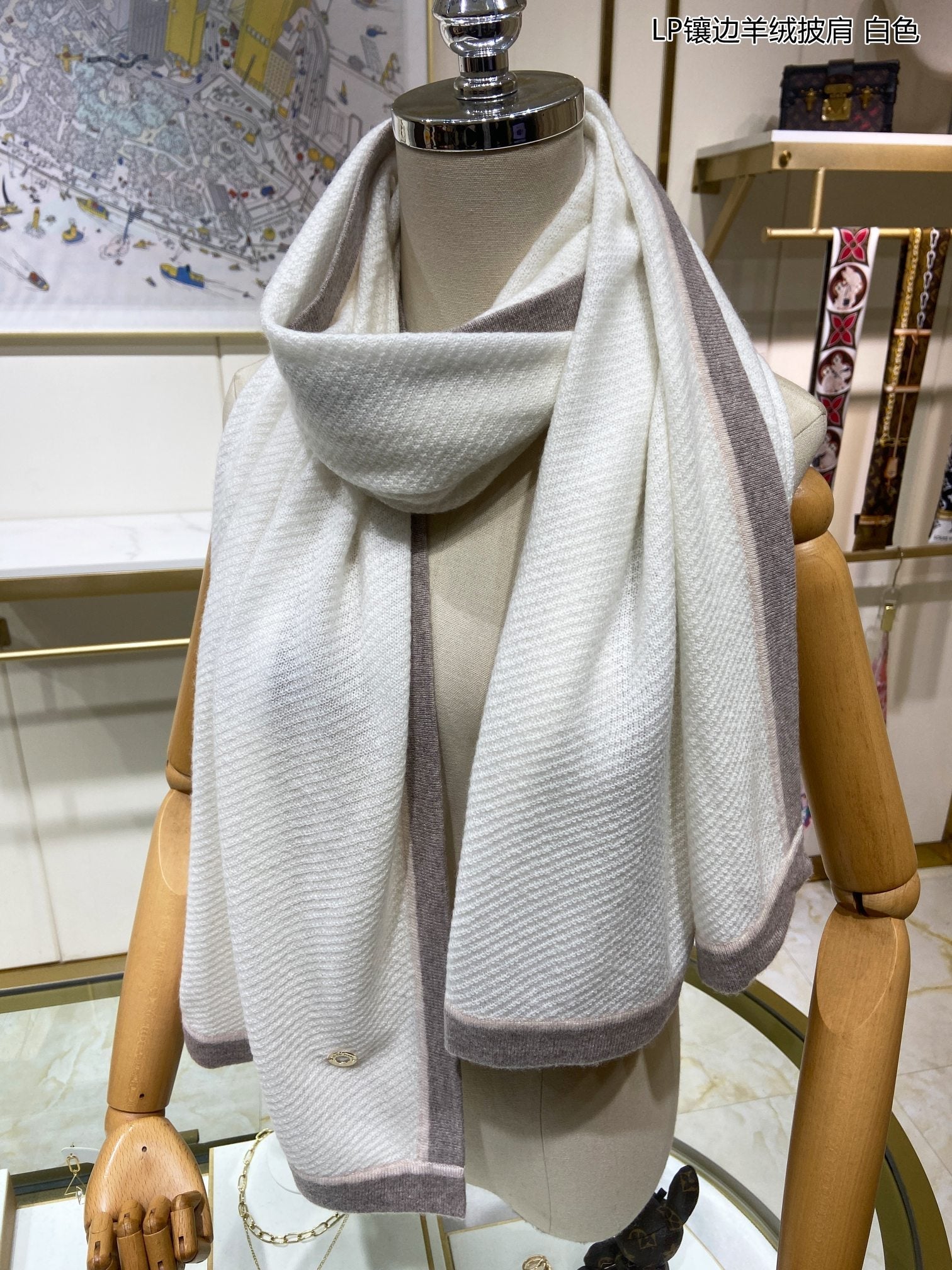 LP Scarf 170 CM In White Mix Grey Consinee Cashmere 205599