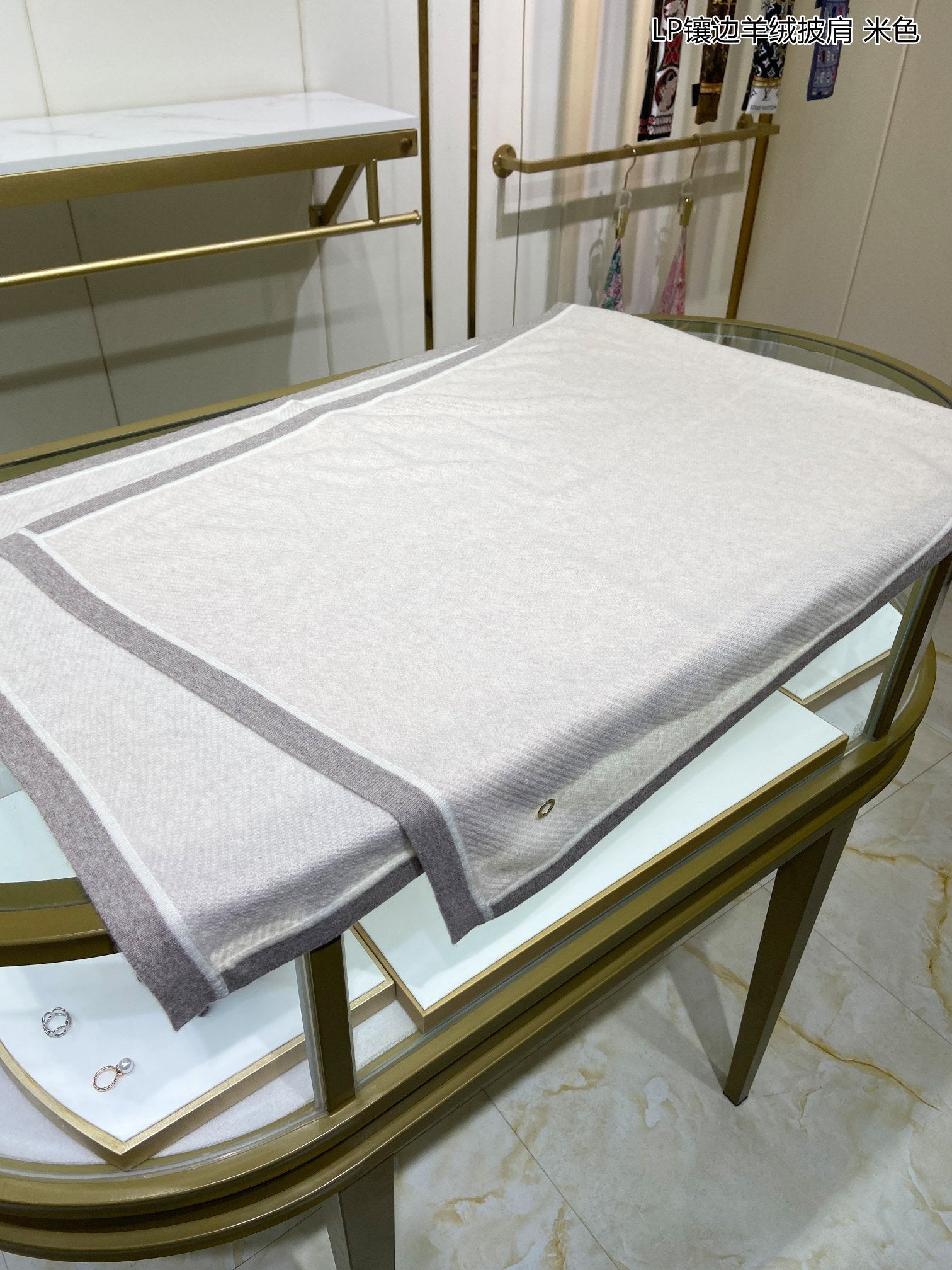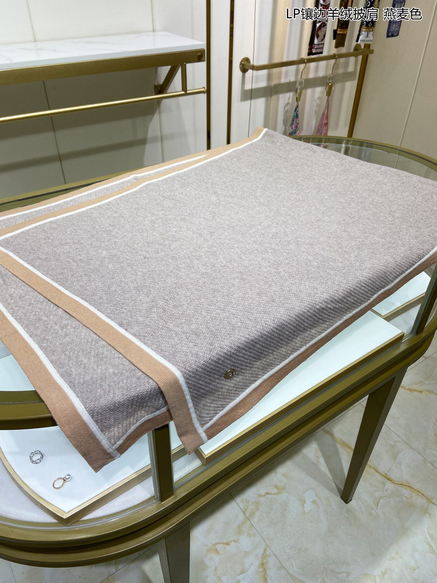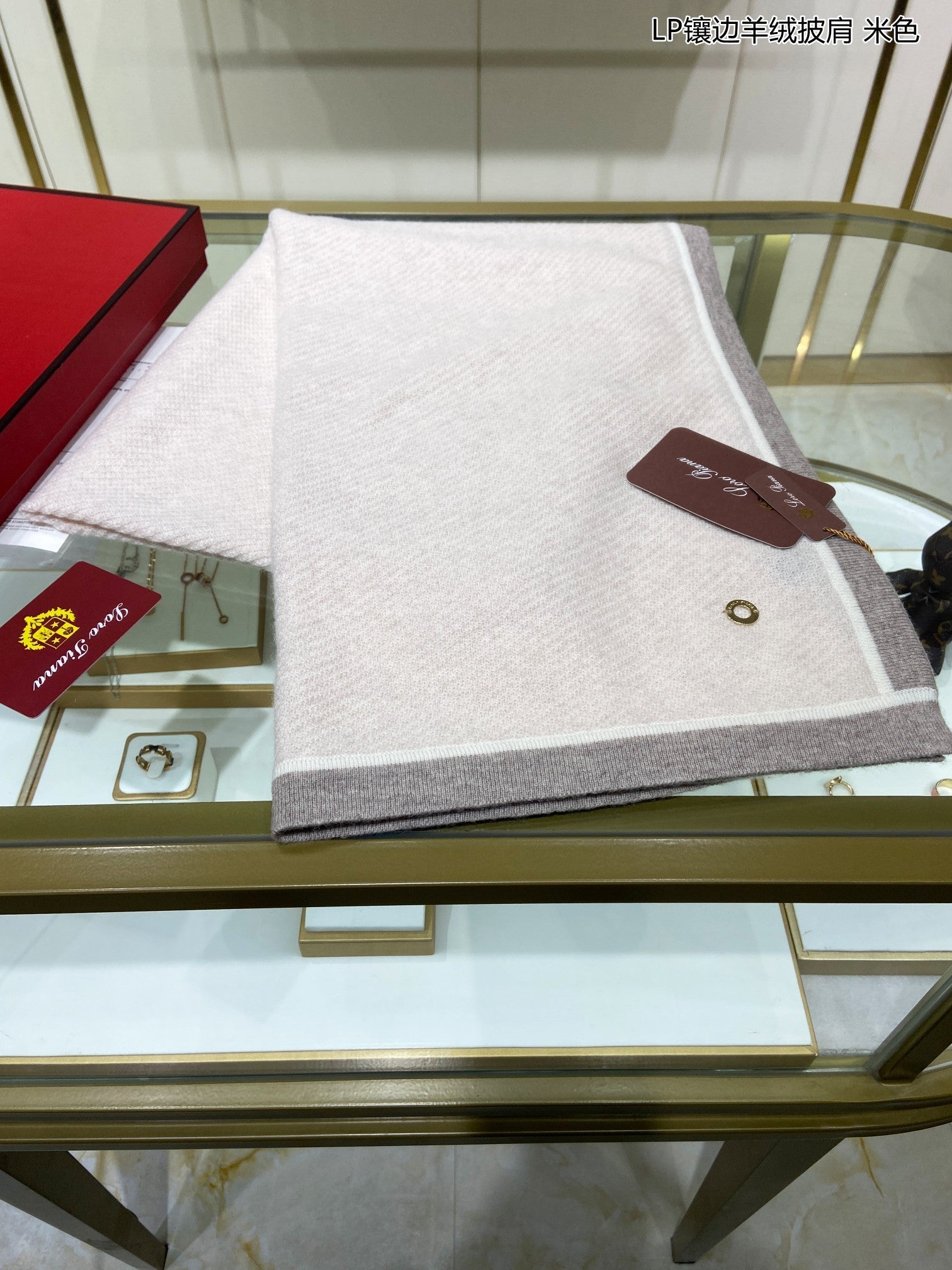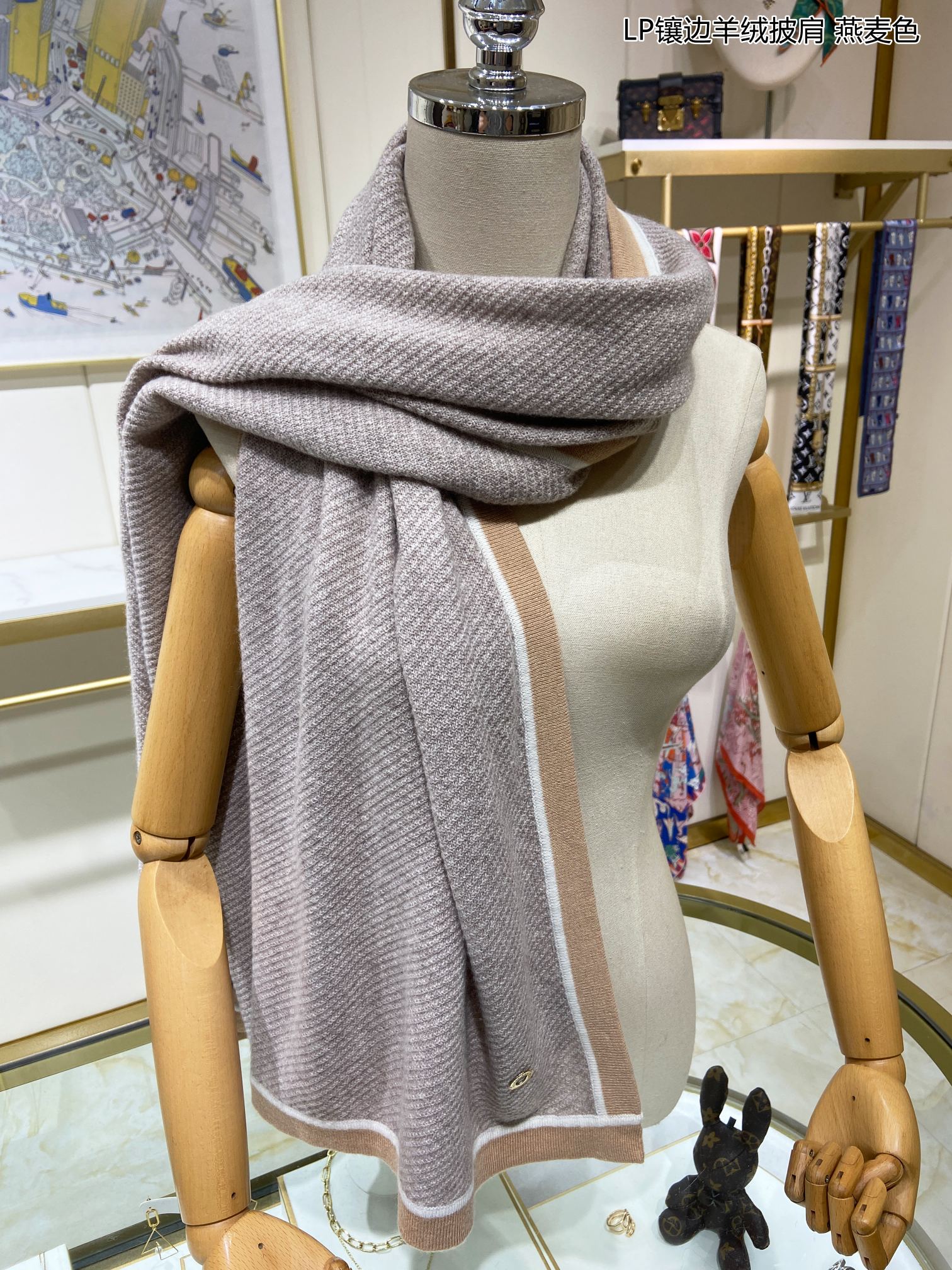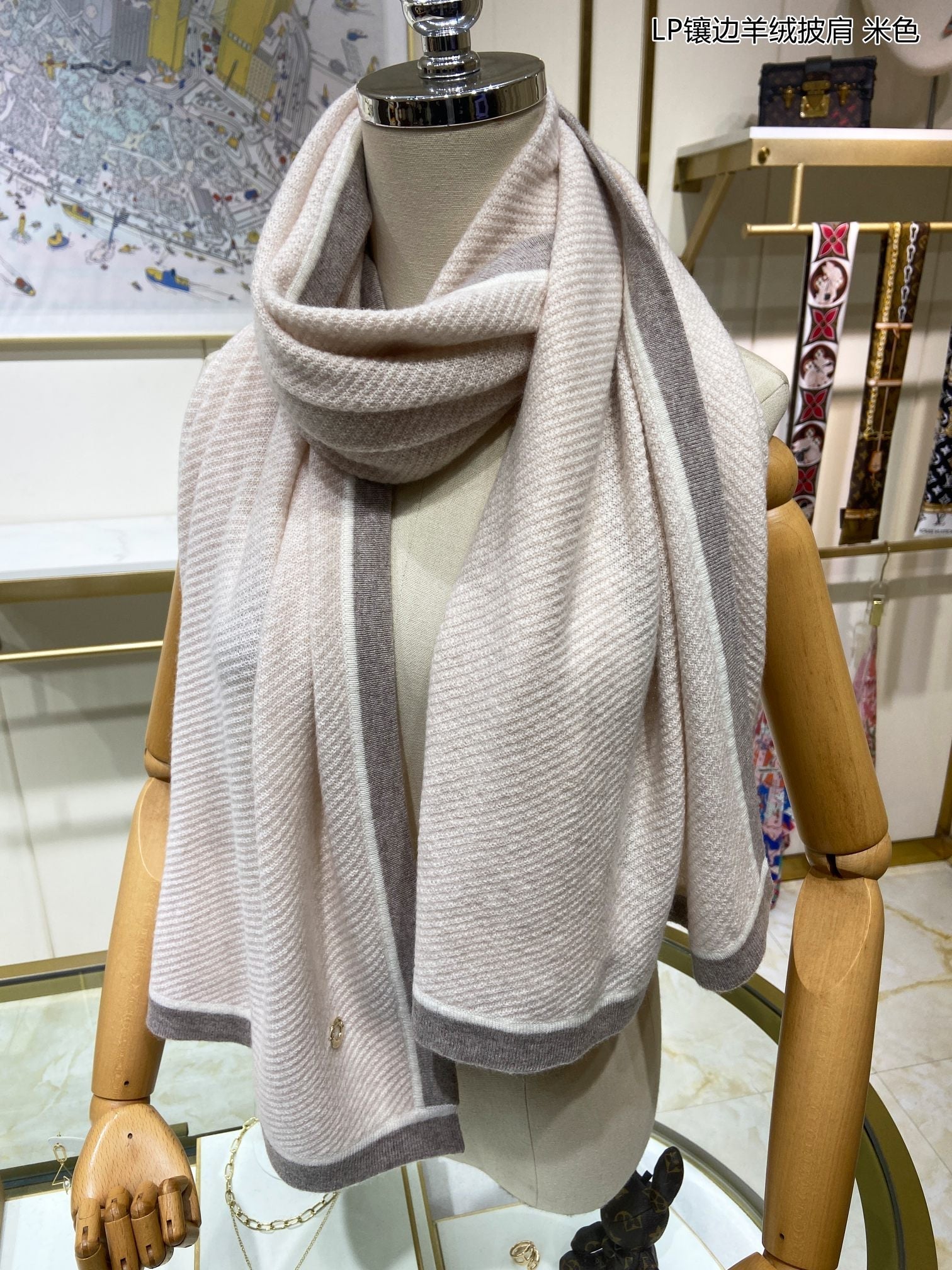 LP Scarf 125 CM In Light Beige With Earth Brown Border Cashmere 201759