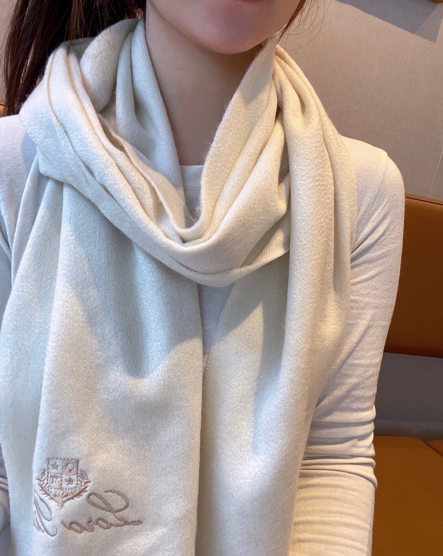LP Grande Unita Scarf 180 CM In Ivory White With Light Yellow Cashmere 175043