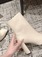Alaia 2025 Square Toe High Heeled Ankle Boot Cream Calfskin 558664