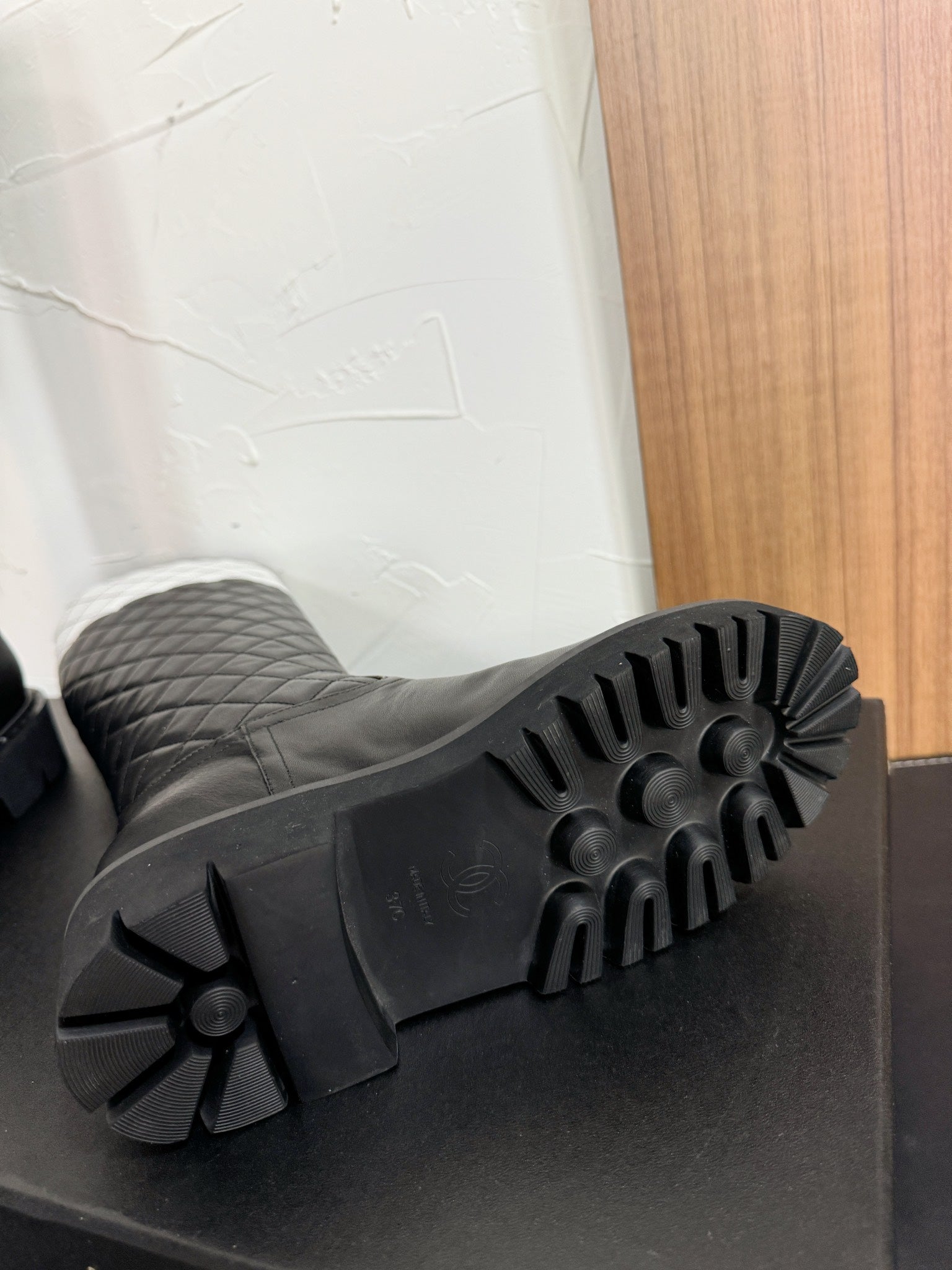 CC High Boots 40mm In Plain Black Mix White Quilted Calfskin 949750