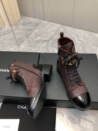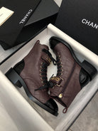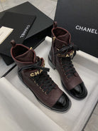 CC Short Boots 45mm In Brown Red Mix Black Quilted Lambskin And Glossy Cowhide 950033