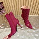 Gucci 2025 Thick-heeled Square-toed Ankle Boots Red Gold Sheepskin Fabric 498066