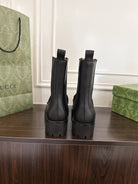 Gucci Horsebit Ankle Boots Black Sheepskin Fabric 490530