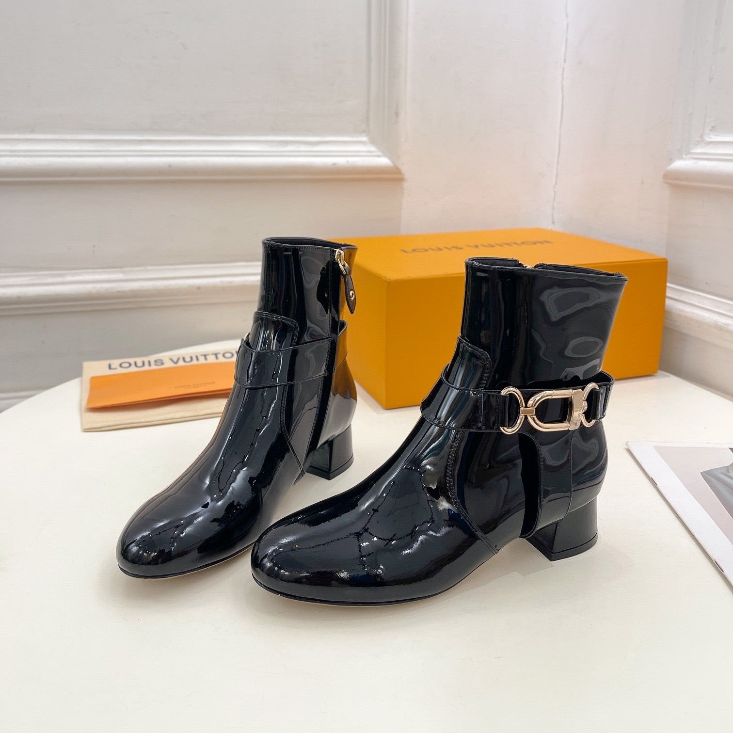 LV Ankle Boots 35mm Glossy Black Cowhide