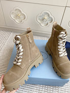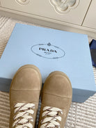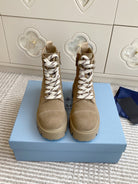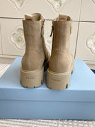 Prada 25 Martin Boot Beige Suede Cowhide 501439