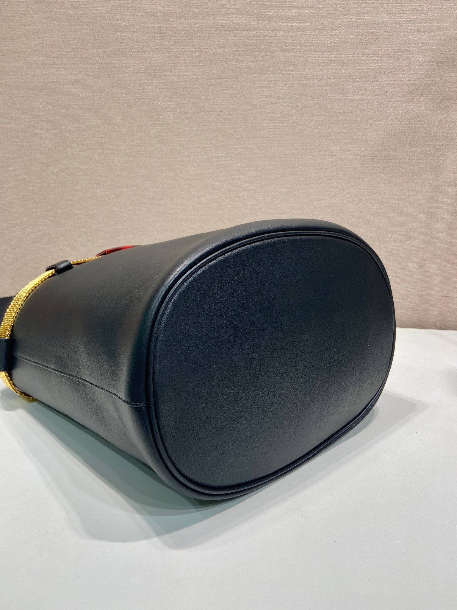 PRA bucket bag iron chain belt black leather 341179