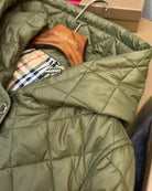 Burberry 25 Quilted Hooded Long Coat Green Polyester Cotton