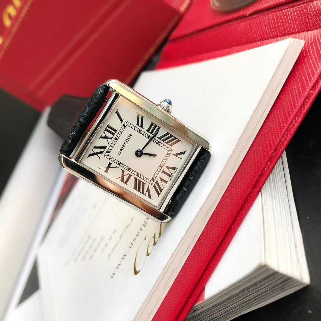 TANK SOLO SILVER CASE BLACK CALFSKIN LEATHER