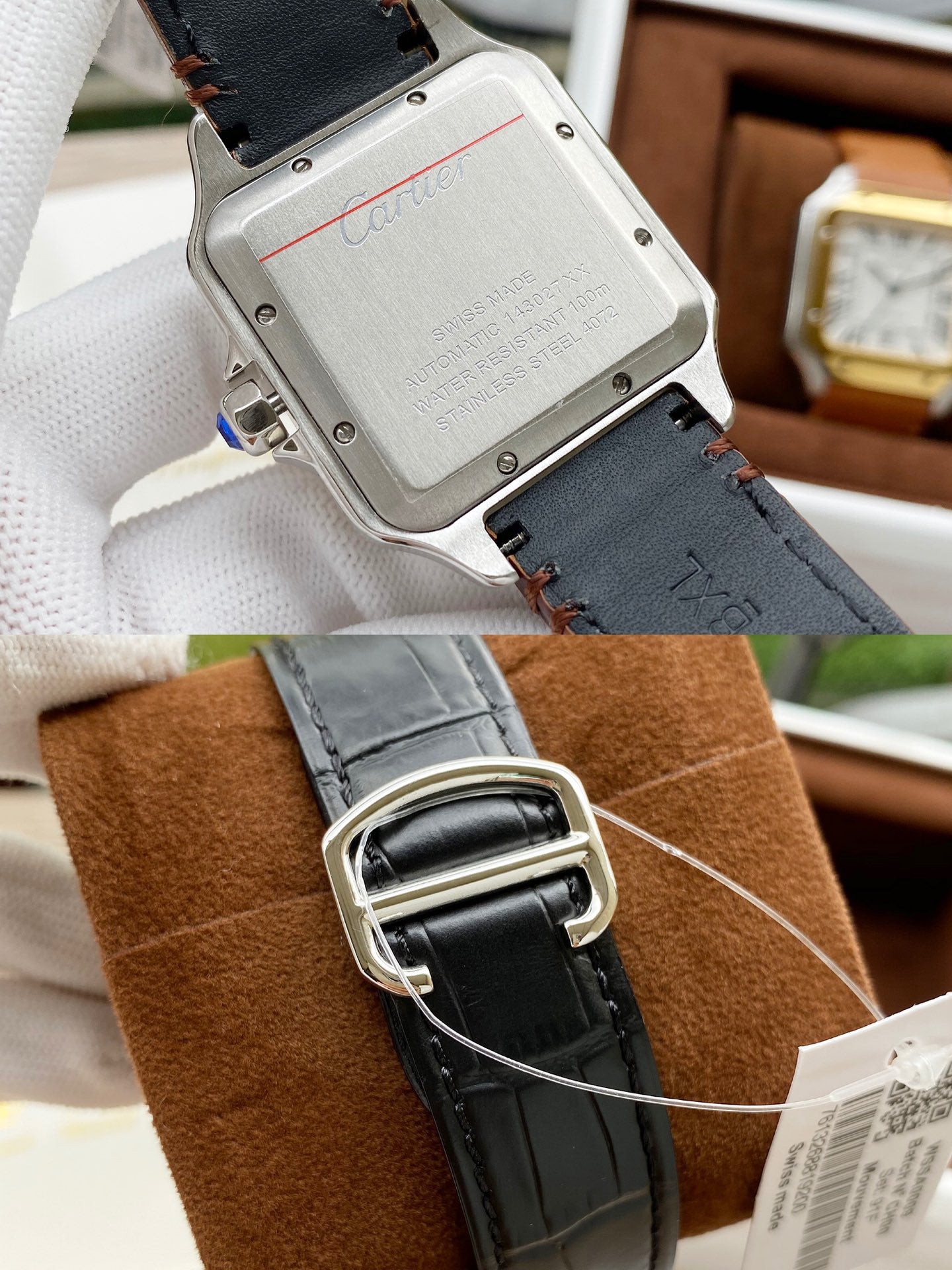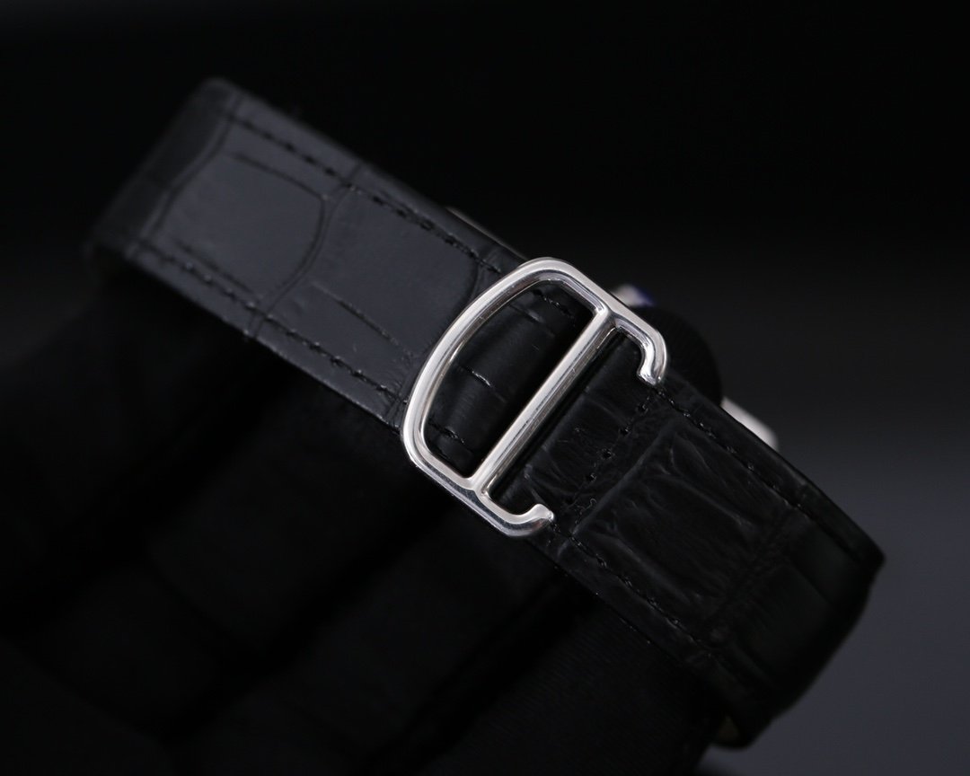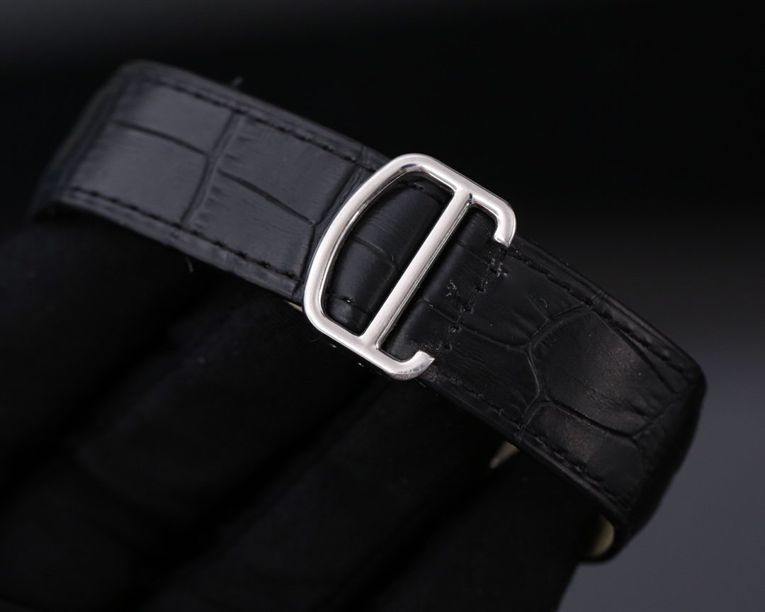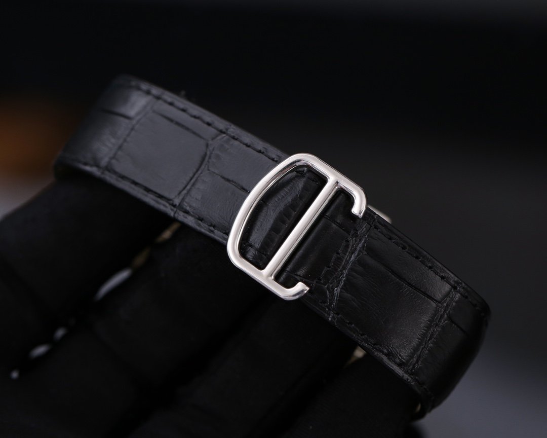 SANTOS 40MM BLACK CASE LEATHER STRAP