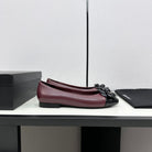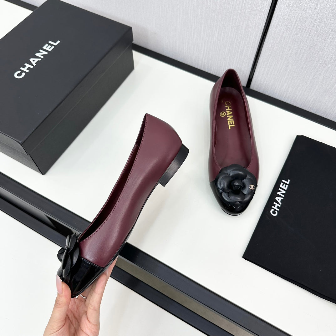 ballet flat flower burgundy calfskin black patent calfskin