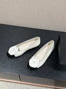 ballet flat flower white calfskin black patent calfskin