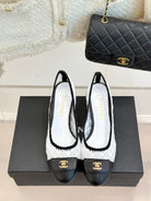 Chanel 25 Ballet Flat 50mm White Black Woven Lambskin 473053