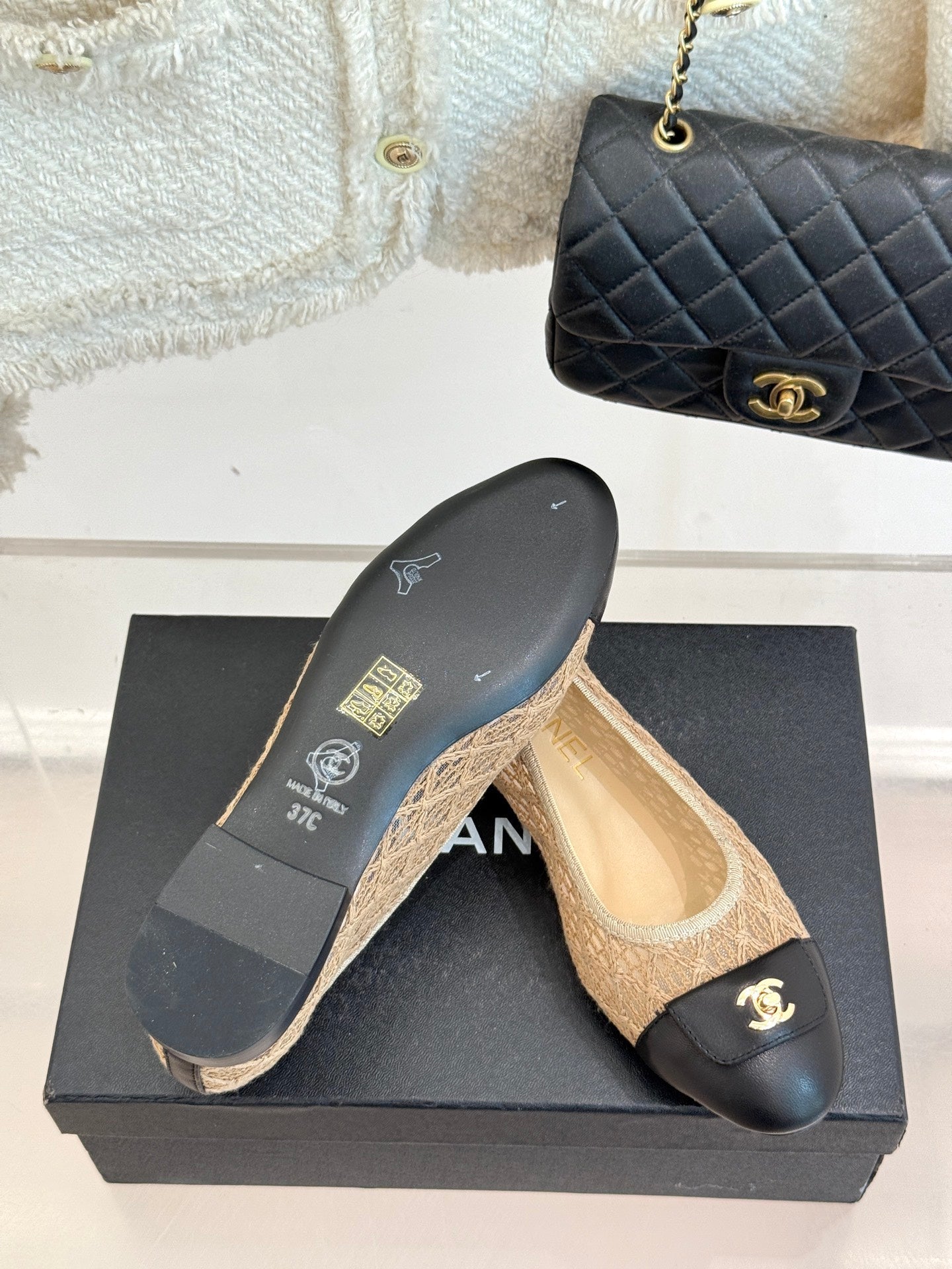 Chanel 25 Ballet Flat Beige Black Woven Lambskin 473056