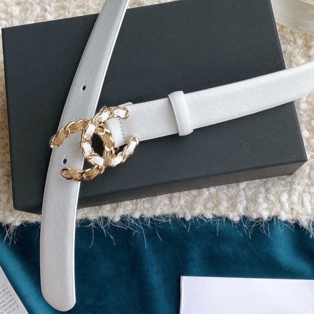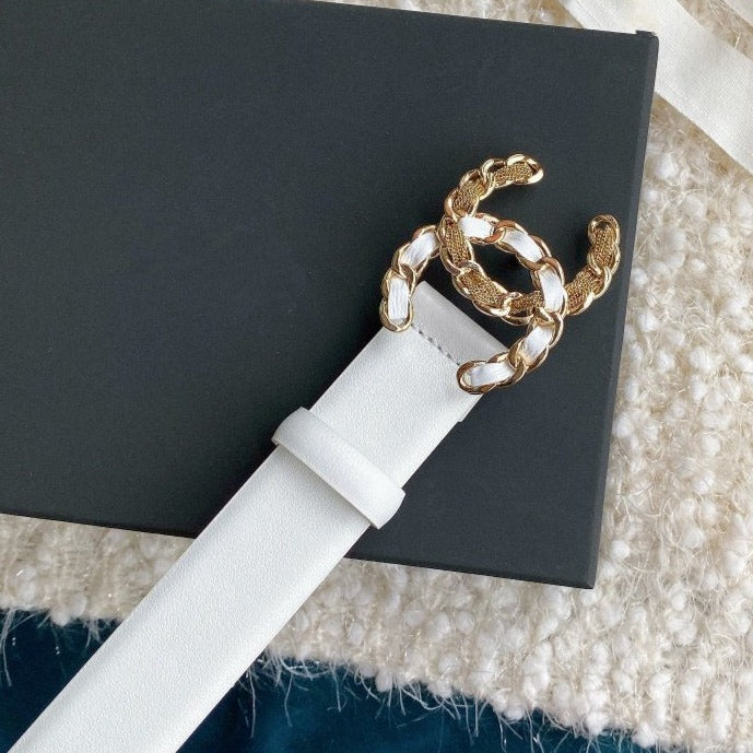 CC WOMEN'S BELT 3.0CM BUCKLE MULTICOLOR LEATHER WHITE