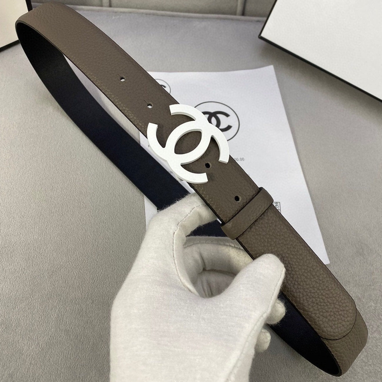CC WOMEN'S BELT 3.0CM LEATHER DARK GREY BUCKLE SILVER