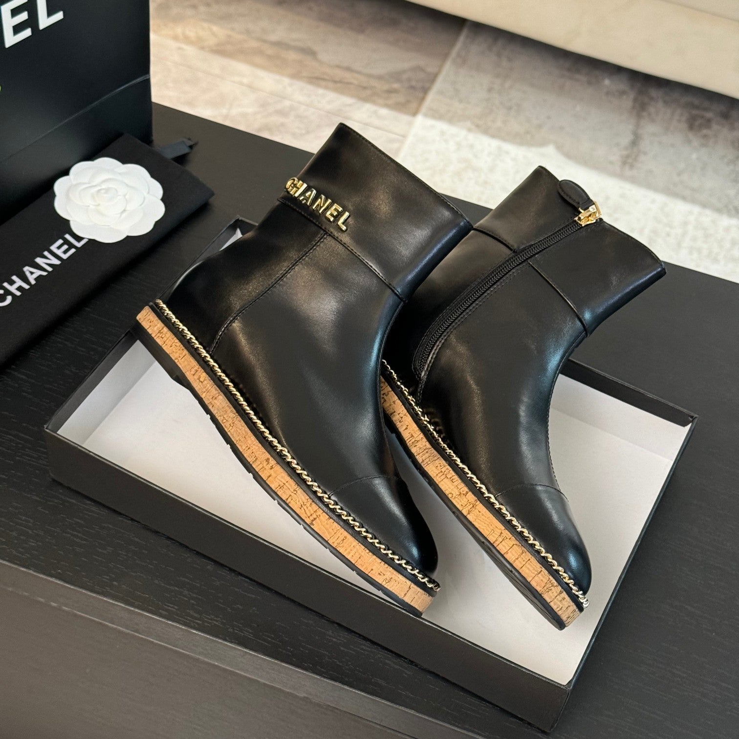 CC Ankle Boots 20mm Black Chain Calfskin