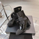 CC Short Boots 60mm Glossy Black Camellia Cowhide