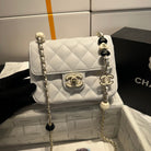 23P Flap Bag 16cm Grey Calfskin Siver Hardware