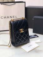 Chanel Phone Chain Bag Black Gold Calfskin