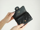 CC FLAP CARD HOLDER 11.3 BLACK GRAINED CALFSKIN GOLD ICON