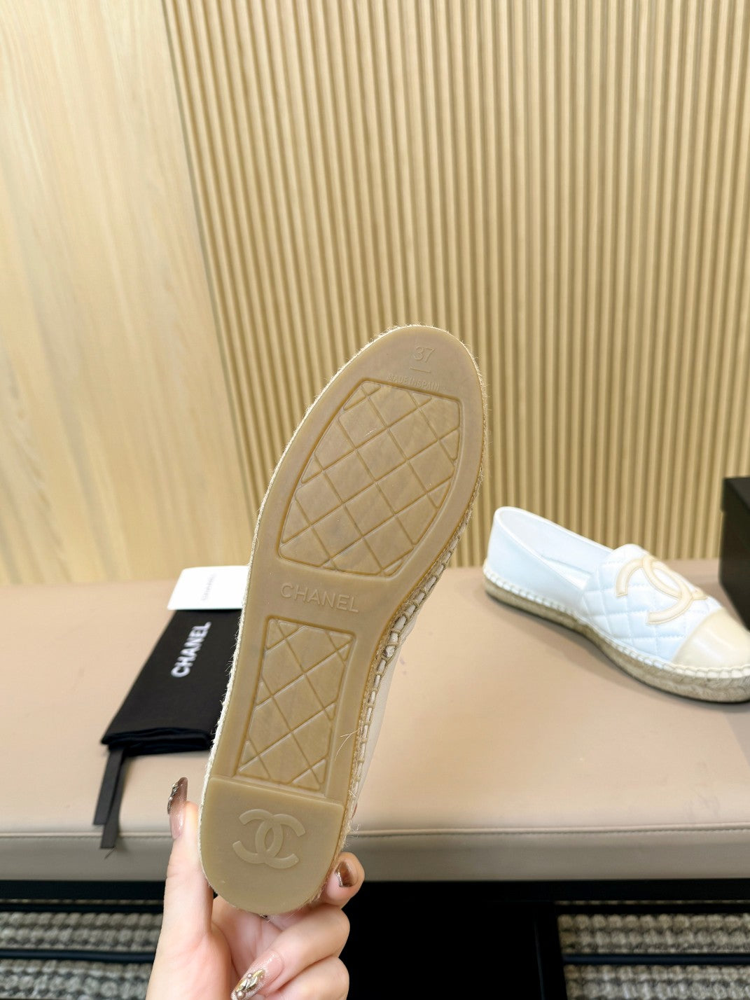 cc espadrilles white beige quilted caflskin