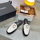 CC 25 Mule Black White Calfskin Large Double C Logo