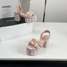 Chanel 25P High-heeled Sandals Pink Tweed Leather 175334