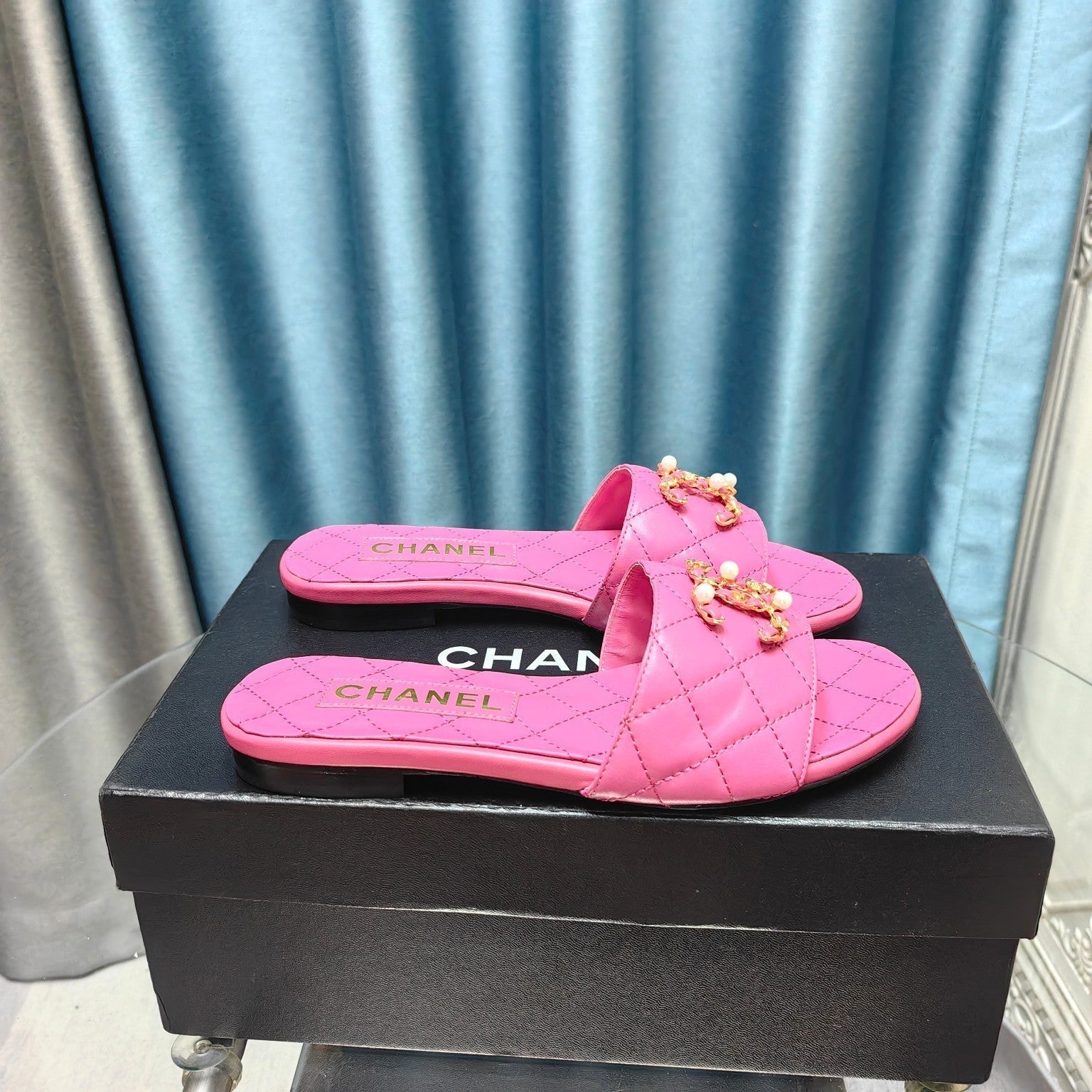 mule sandal quilted dark pink calfskin mop