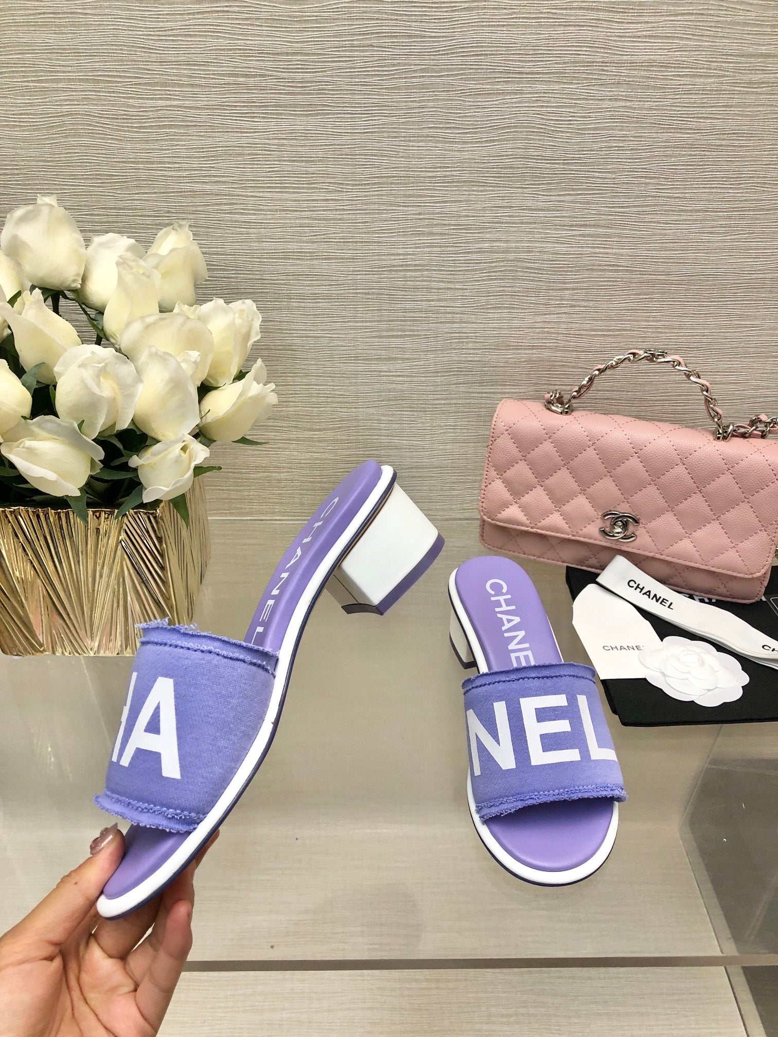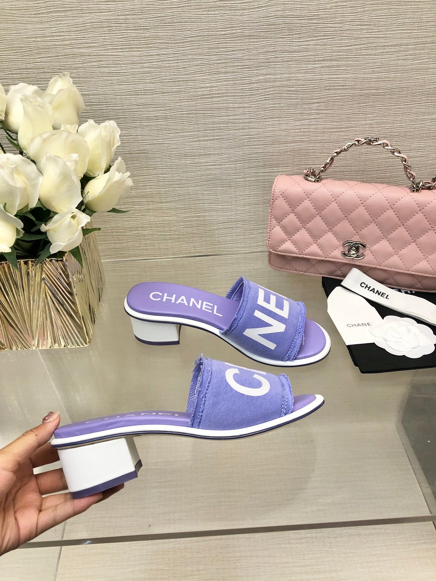CC 25C Mid Heel Mule Pearl Violet Fabric Material 212960
