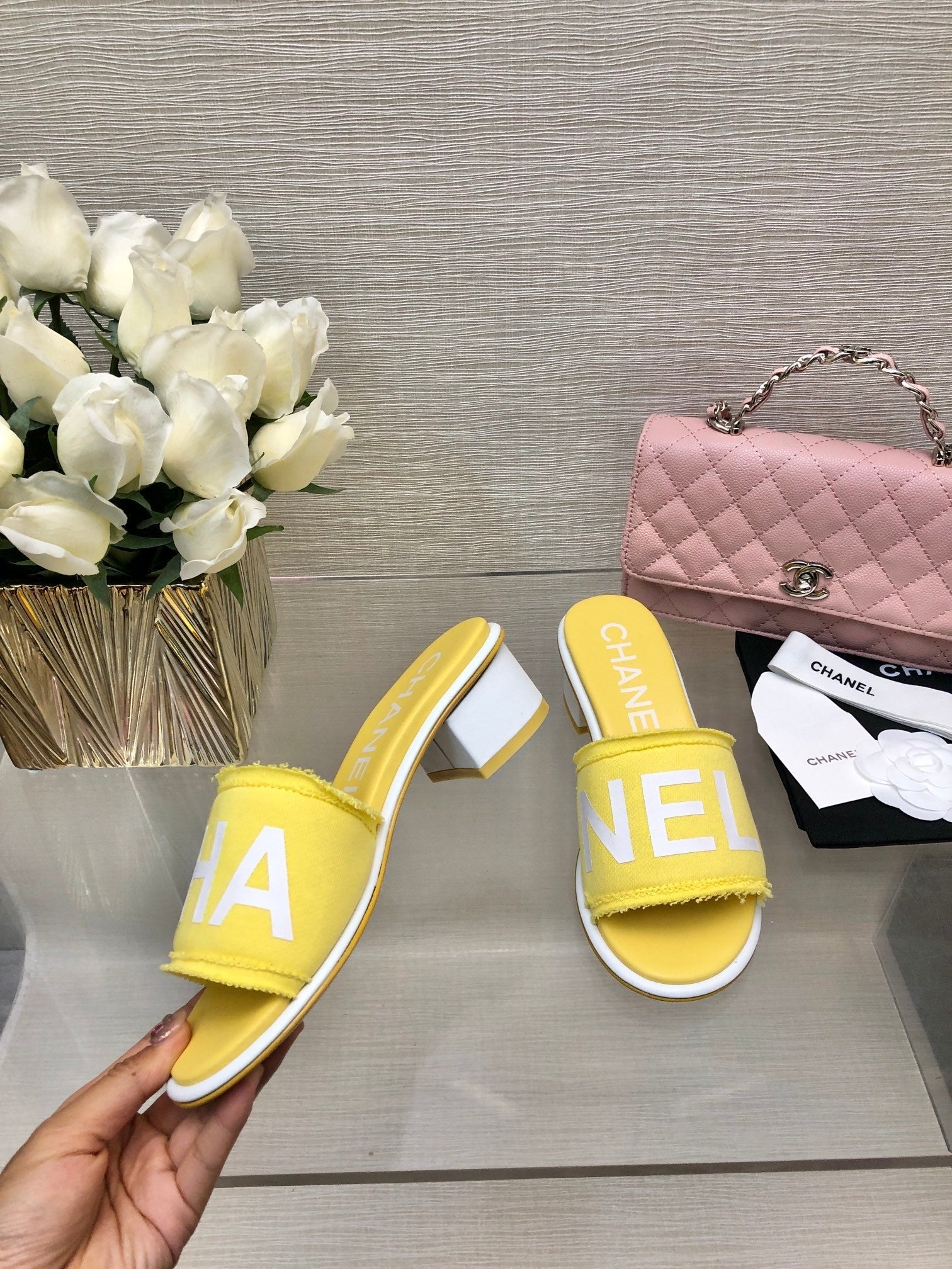 CC 25C Mid Heel Mule Yellow Fabric Material 212958