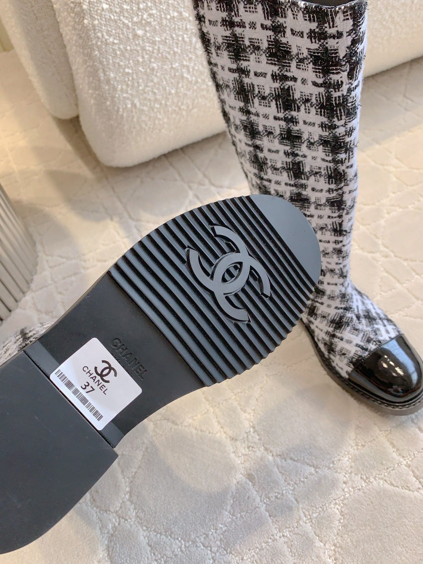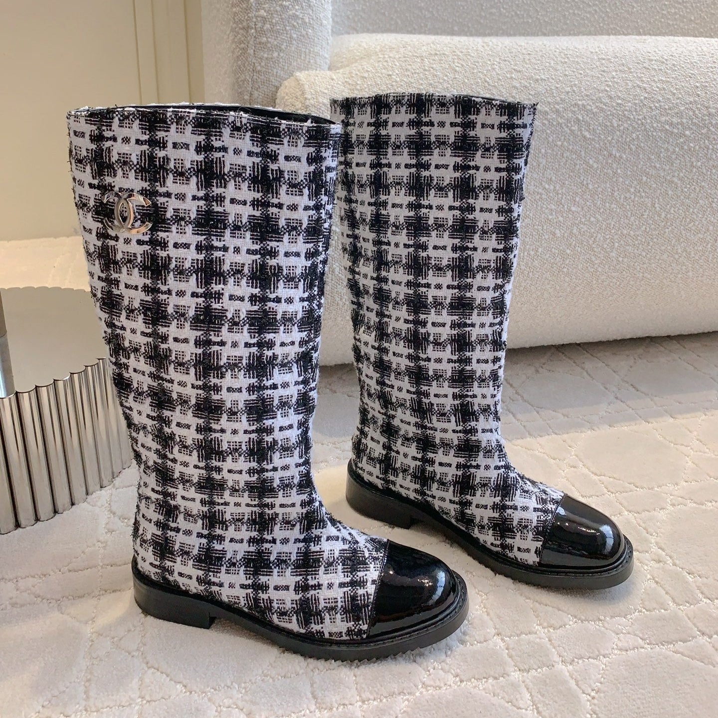 CC High Boots In White Tweed Mix Curly Wool 145501