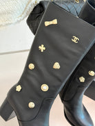 CC High Heel Boots Black Sheepskin Mix Charm 512034